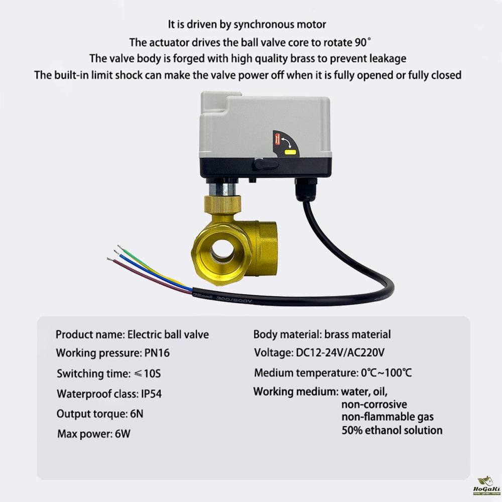 Brass Motorized Ball Valve 3-Wire 2-Control Electric Actuator DC12-24V 3 Ways /2 Way DN15 DN20 DN25 DN32 DN40 with Manual Switch