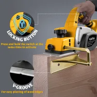 【Safety Switch】This electric planer can only be started when both the on/off switch and the safety switch are pressed simultaneously. The safety switch design helps prevent accidental activation of tools and reduces the risk of injury or damage to the tools themselves.