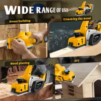 【High-Efficiency Brushless Motor】Brushless planers can operate at 15,000 RPM, with a 3-1/4 inch (82 mm) planing width and 0-0.08 inch (2 mm) planing depth, making material processing easy and efficient, reducing your workload.