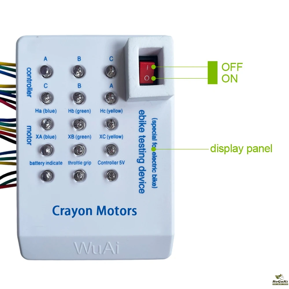 1.Motor Coil Detection: Connect the three clamps on the motor coil end of the detector to the three thick wires of the motor and rotate the motor, and the three signal lamps will flash in turn, which is normal. If which does not light up, the winding is faulty.
