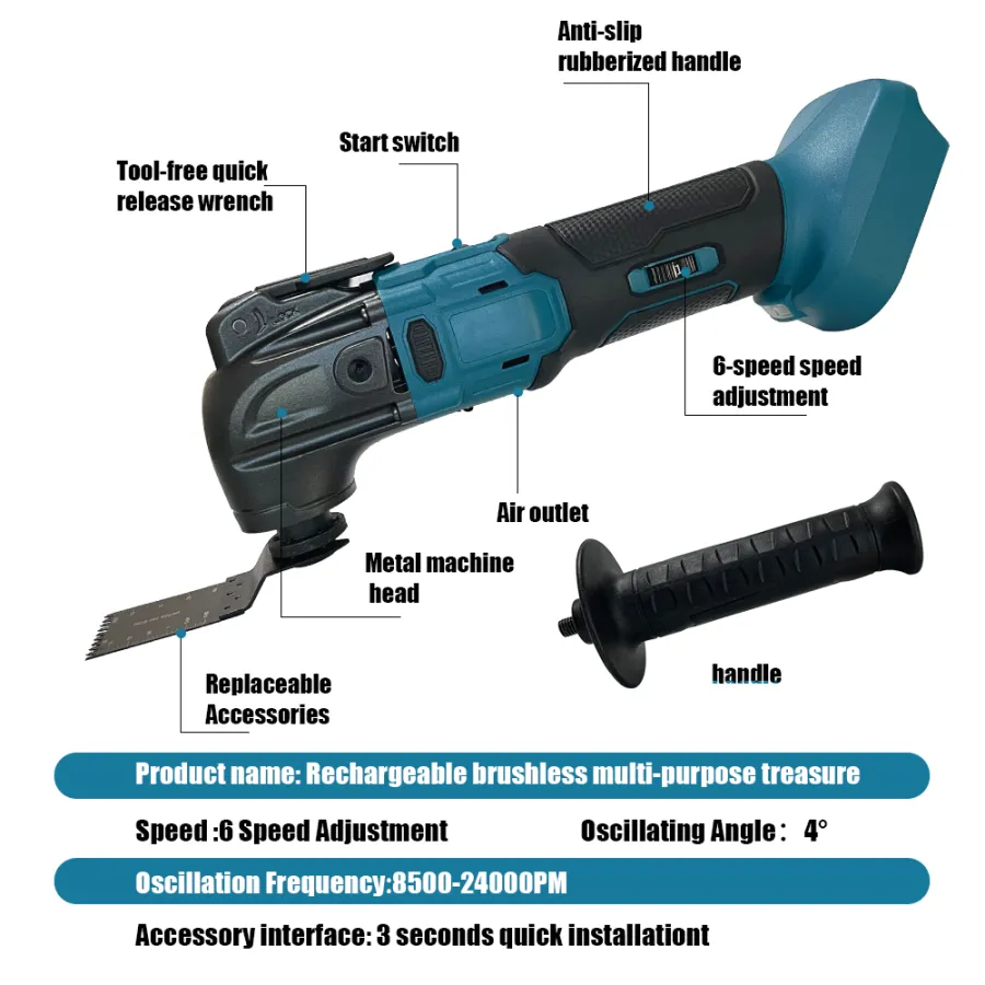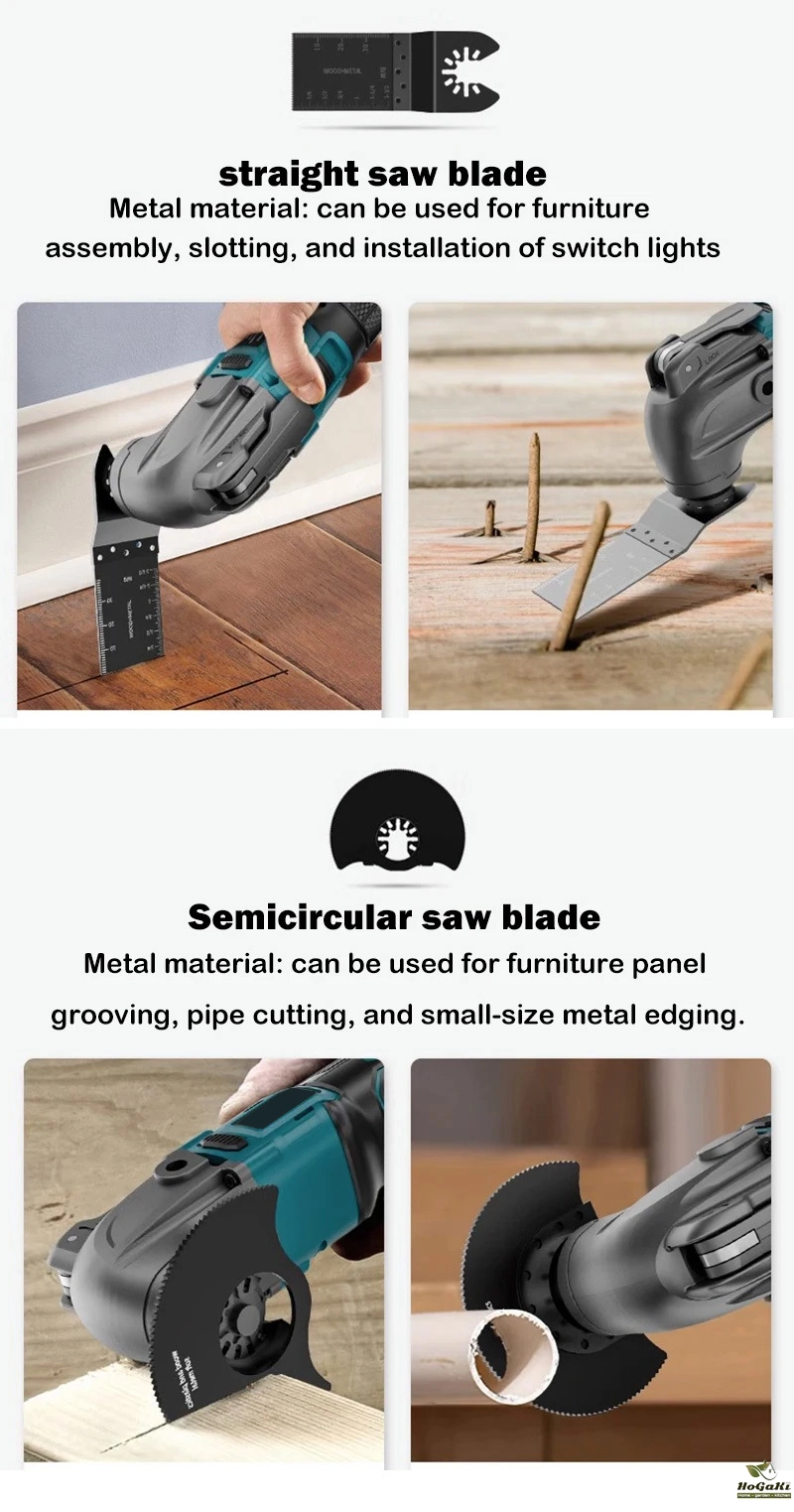 The Cordless Oscillating Tool is suitable for oscillating tool blades with holes of universal treasure, it is universal for most of the models, your saw blades at home can be fully utilized.