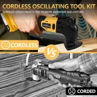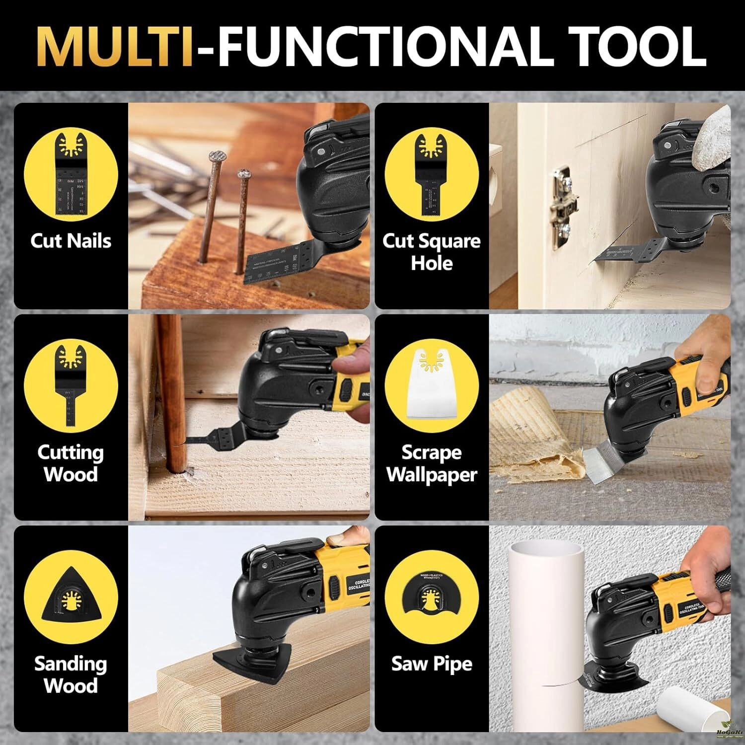 【Portable and Cordless】This cordless oscillating tool which is compatible with Dewalt 20V battery (Battery not Included), you can experience the freedom to work anywhere and anytime without worrying about tangled cords and mobility issues.