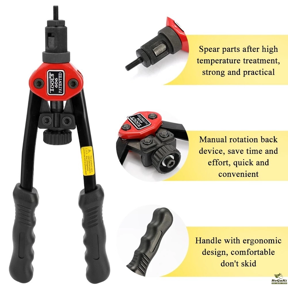 BT-606 Riveter Gun Tool Threaded Hand Rivet Nut Gun M3 M4 M5 M6 M8 Double Insert Manual Double Handle Riveter Tool 200pcs Nuts