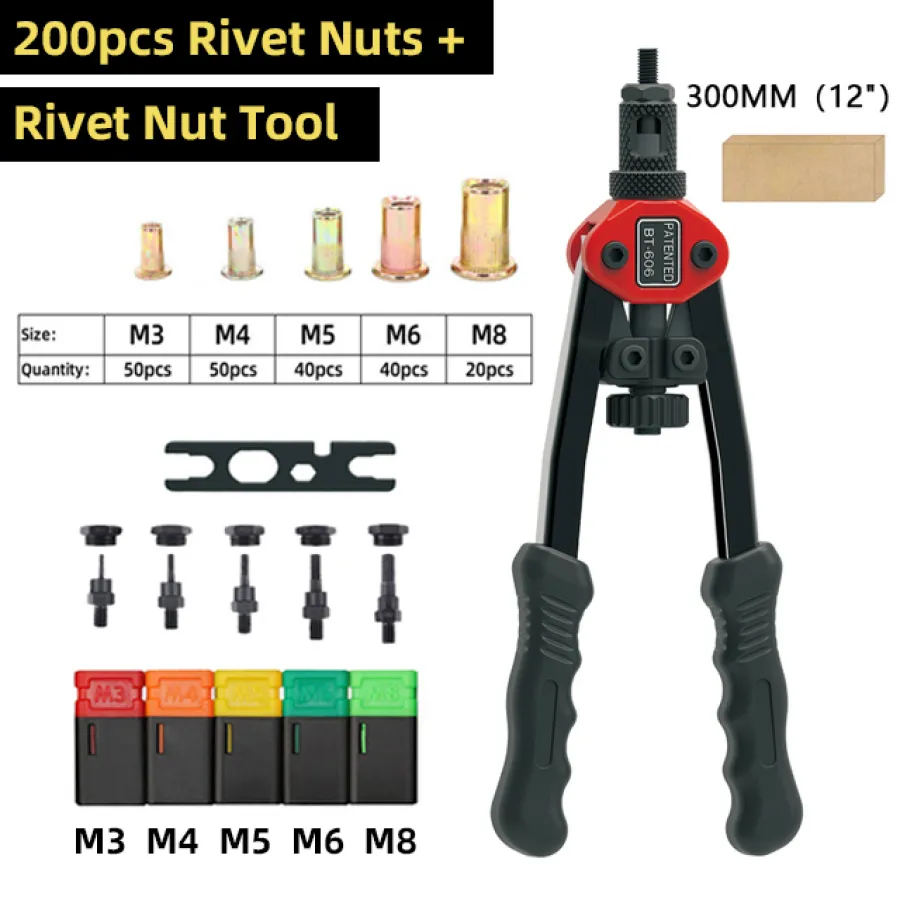 BT-606 Riveter Gun Tool Threaded Hand Rivet Nut Gun M3 M4 M5 M6 M8 Manual Double Handle Riveter Tool /only 200pcs Nuts