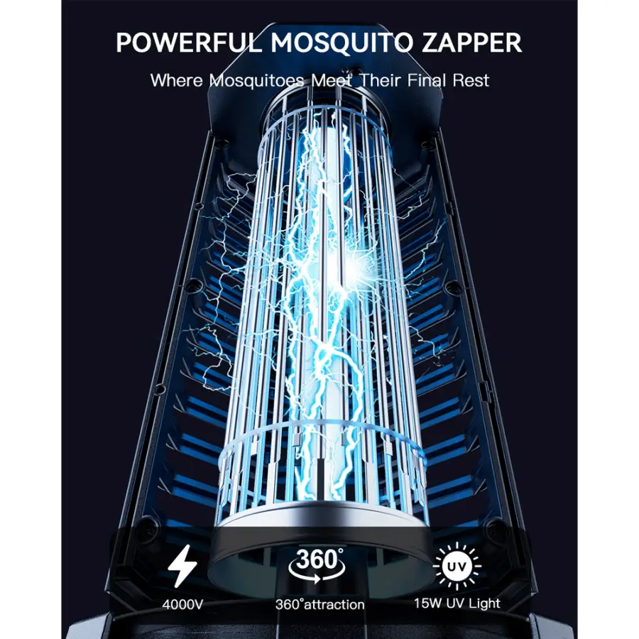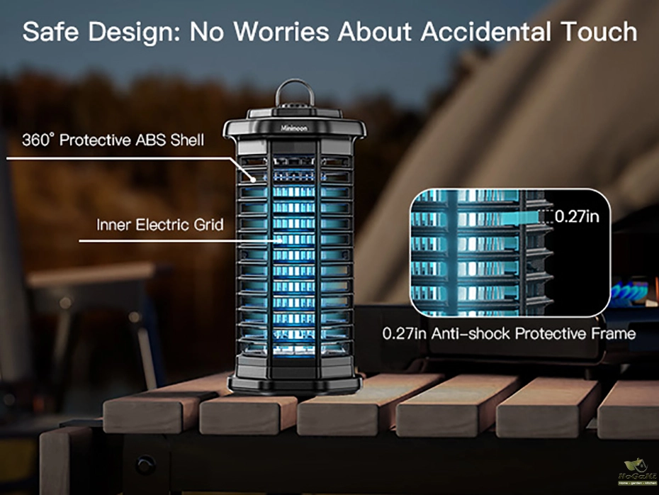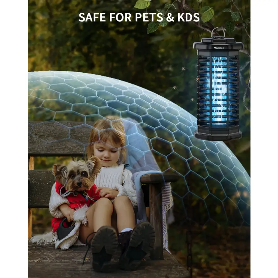 Minimoon bug zapper effectively eliminates pets with its 15W UV light to attract mosquitoes and 4000V high-voltage grid for instant electrocution, leaving no chance of escape