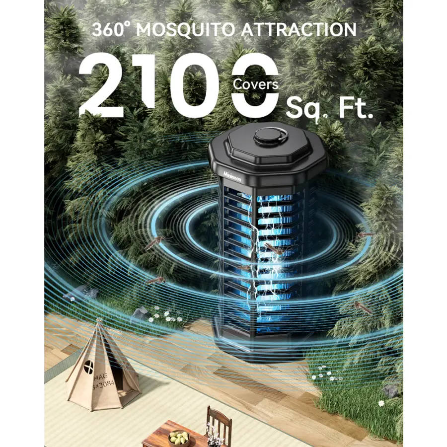 This versatile mosquito lamp provides protection covering over 2100 square feet, making it ideal for both indoor and outdoor use. Perfect for patios, gardens, backyards, garages, lawns, farms, and other spacious areas