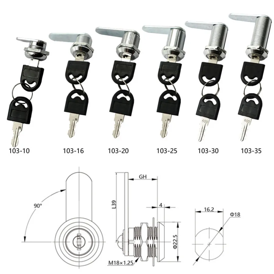 High quality Metal Alloy Cylinder Cabinet Locker Cam Lock with 2 Keys