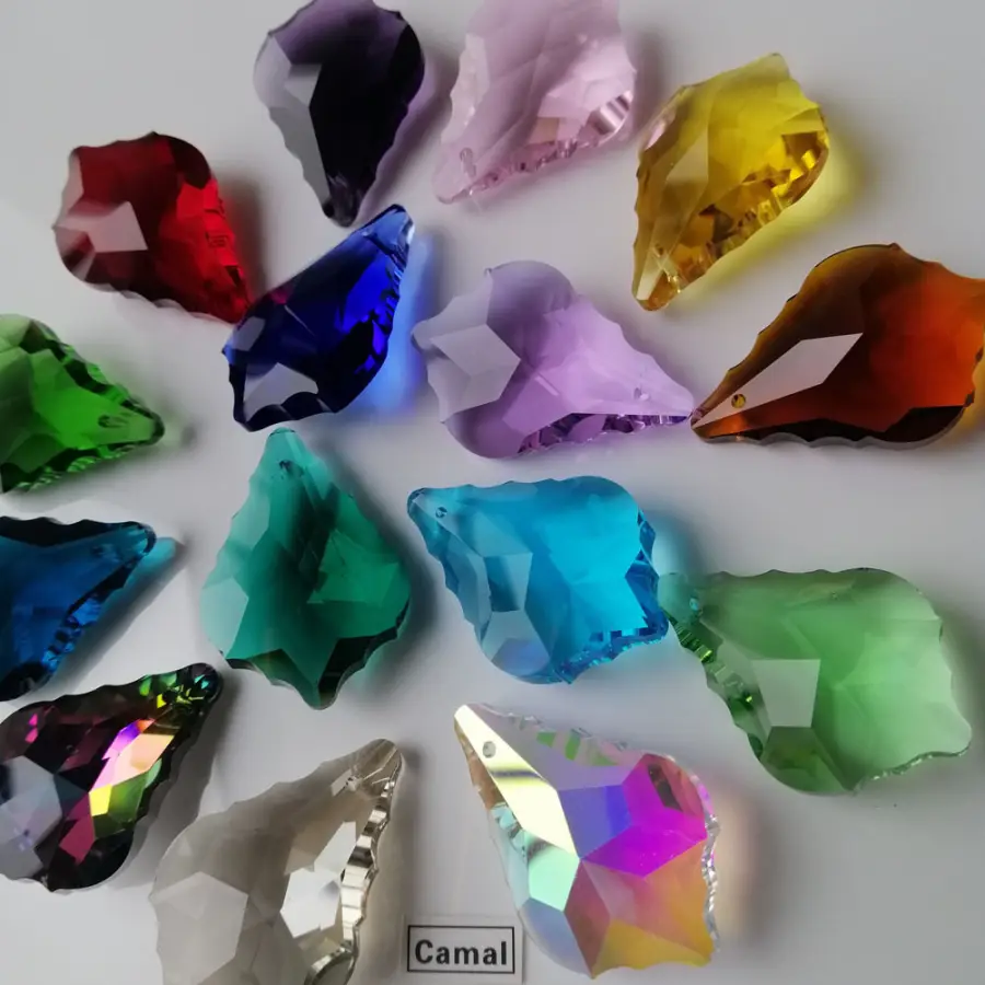 Camal 5PCS 38mm Colorful Maple Leaf K9 Crystal Glass Prisms Pendant SunCatcher Lamp Lighting Chandelier Parts Hanging Home Decor