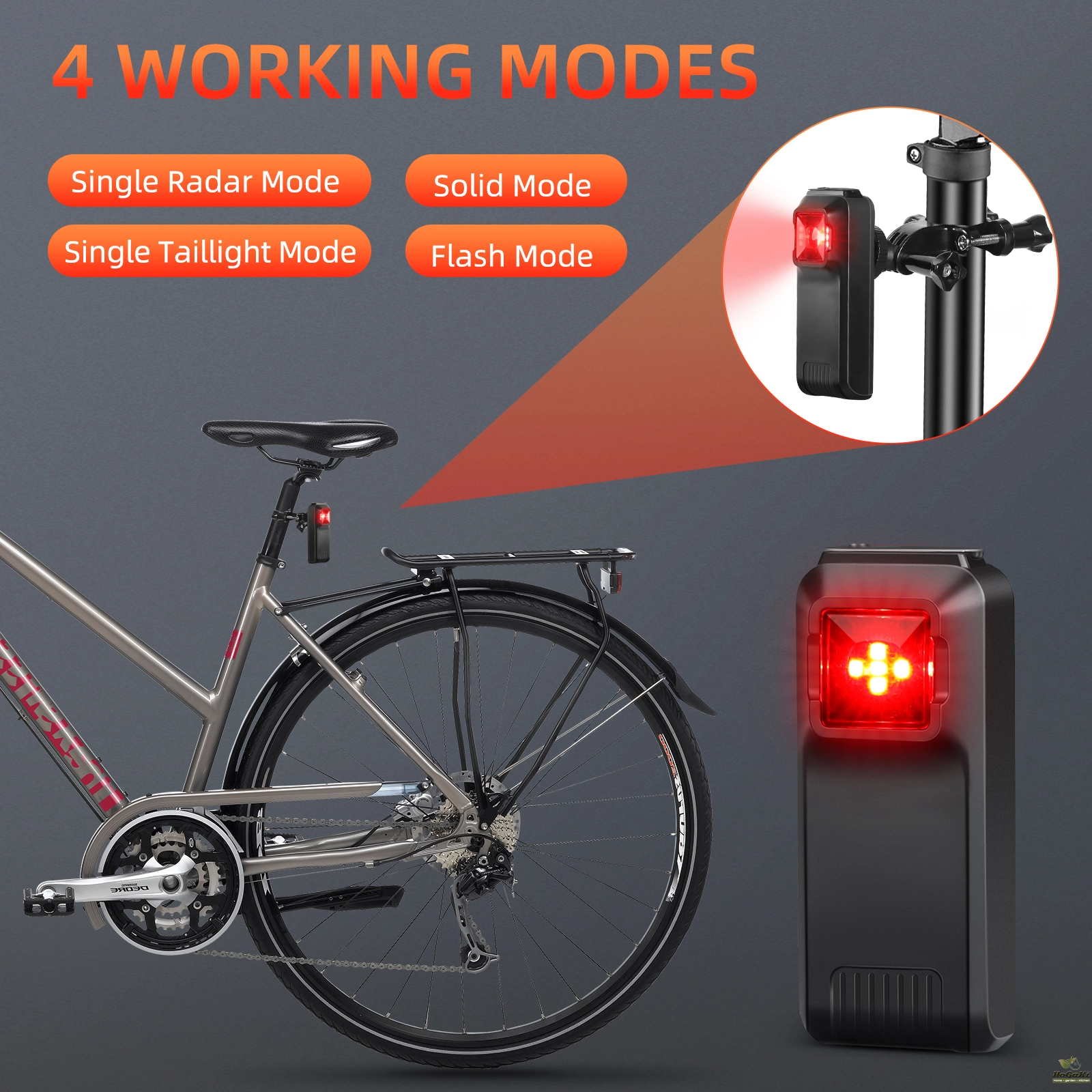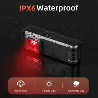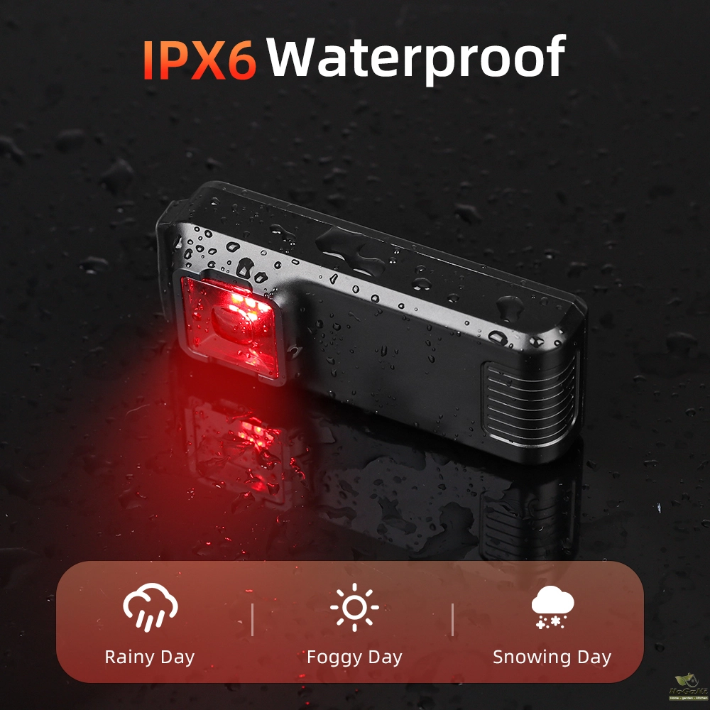 The bicycle radar taillight has a waterproof rating of IPX6, which means it can resist the impact of water flows and remain operational in various weather conditions. This taillight is perfect for use in rainy, snowy, or wet road surfaces.