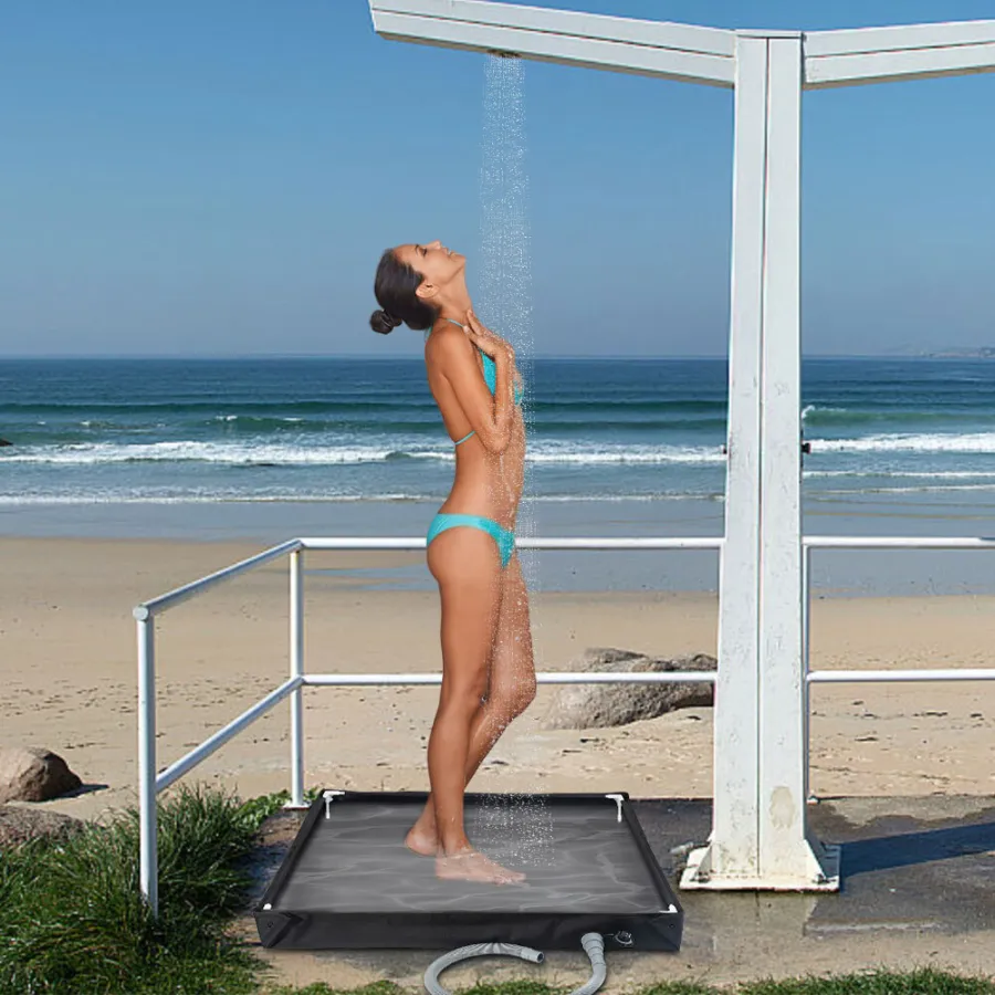 Foldable Shower Base with Drain Hose Camping Shower Tent Floor Base Outdoor Tent Shower Tray for RV Outdoor Camping Shower Beach Pet Bath