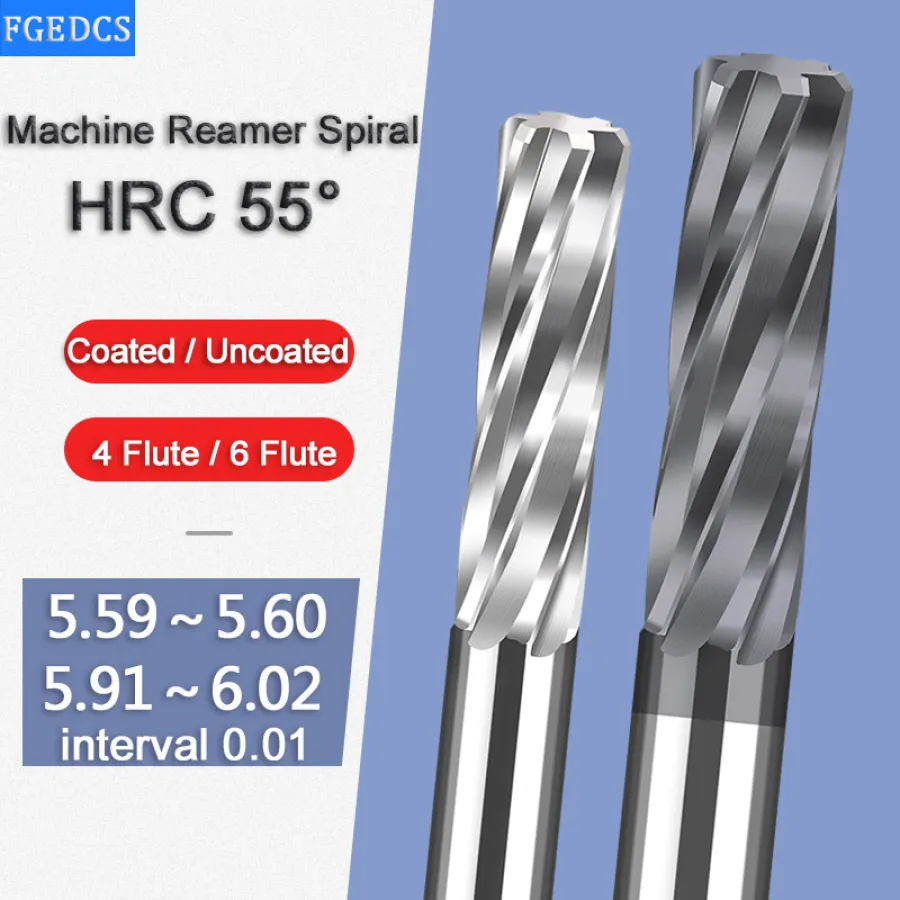 1pcs HRC55 4/6 Flute Carbide Machine Reamer Spiral 5.59 5.6 * 4 Flutes 5.9 5.91 5.92 5.93 5.94 5.95 5.96 5.97 5.98 5.99 6.0 6.01 6.02 Metal Cutter 6 Flutes CNC Chucking Reamer Cutting Tools Coated Steel