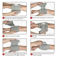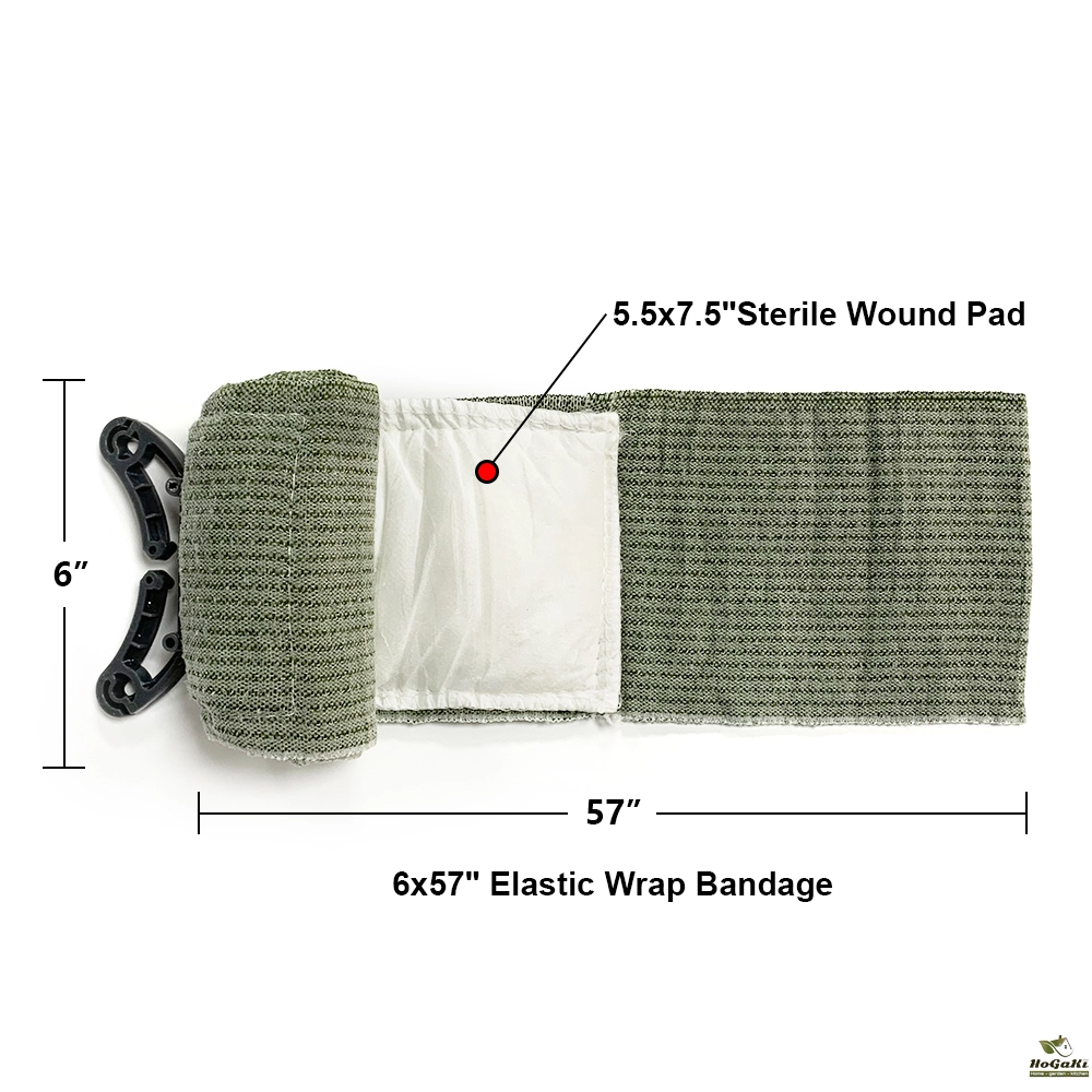 【ALL-IN-ONE】The pressure bandage with a 6" x 7" non-adherent pad consolidates multiple first-aid devices, such as primary dressing, pressure applicator, secondary dressing, and a foolproof closure apparatus to secure the bandage in place.