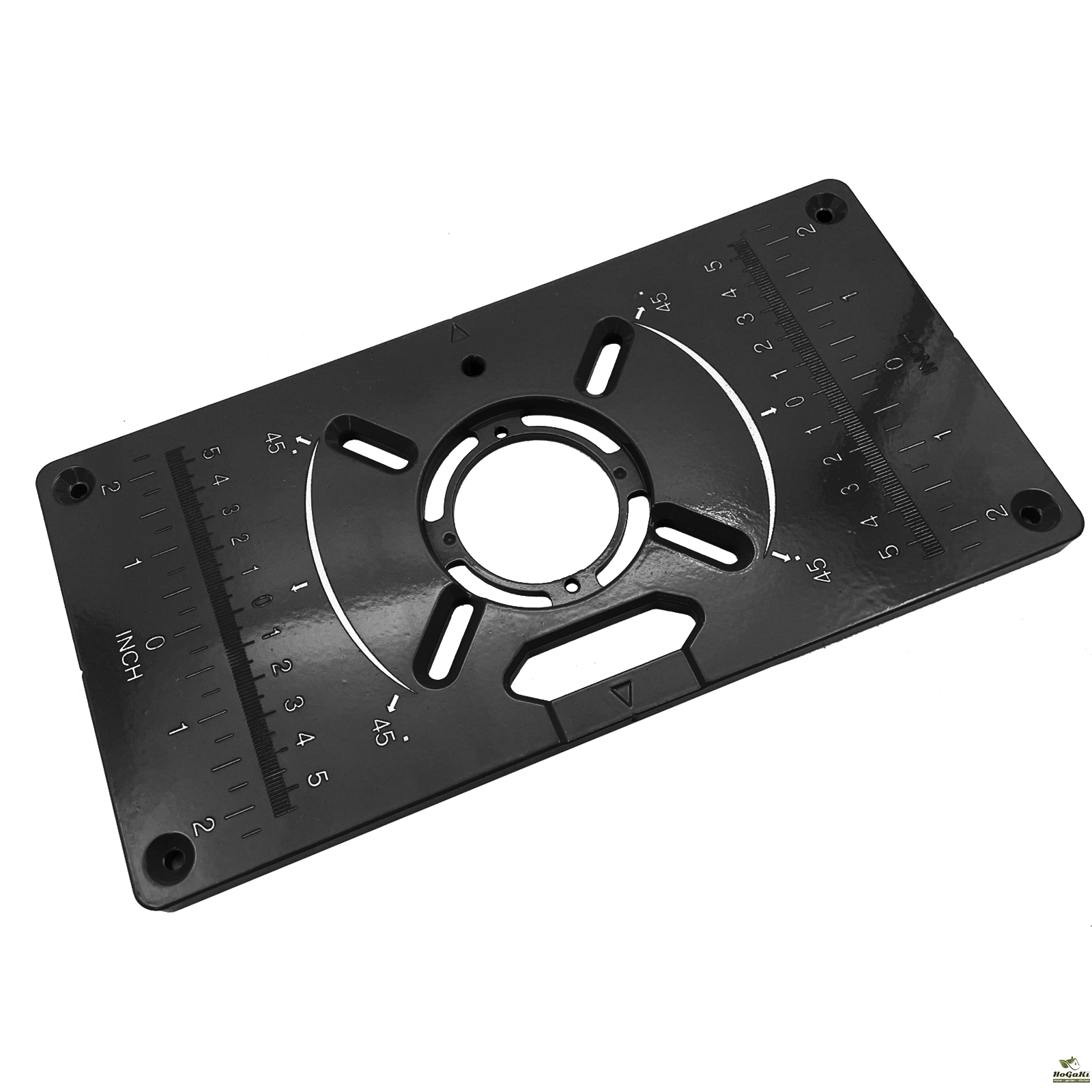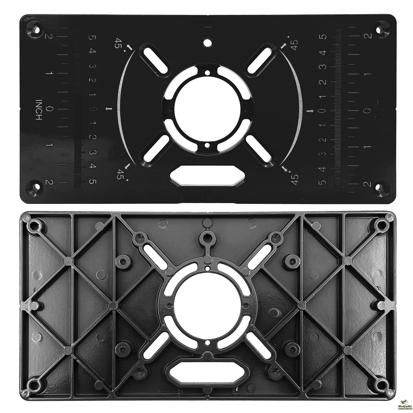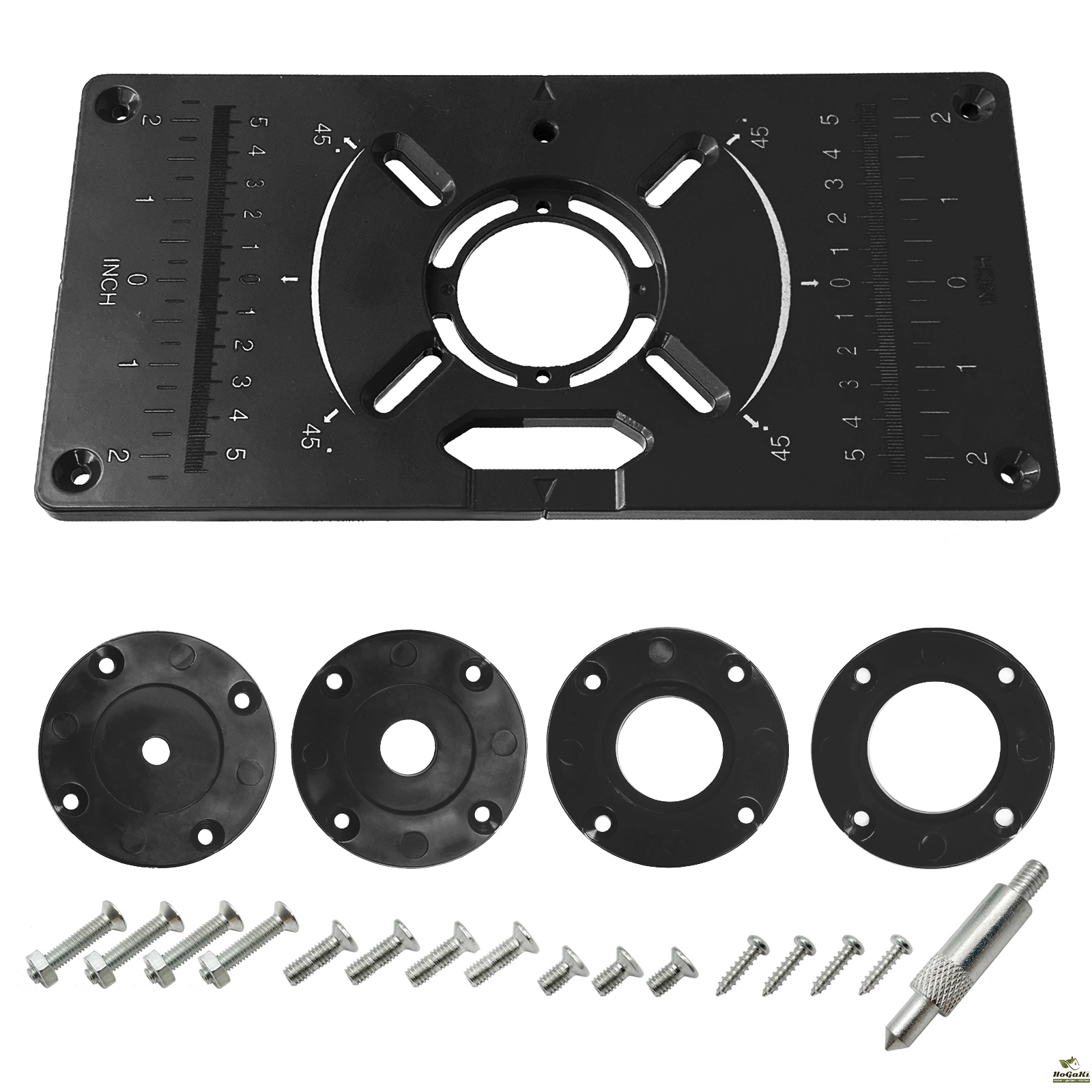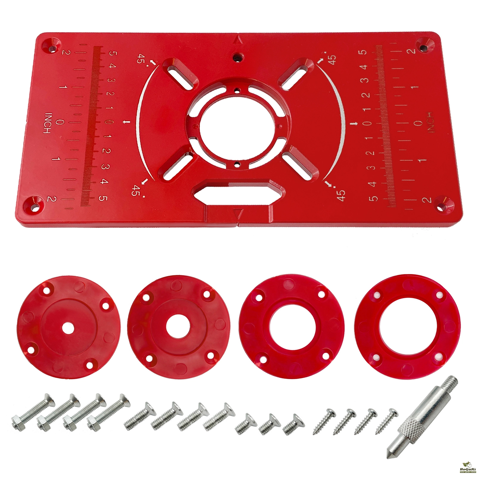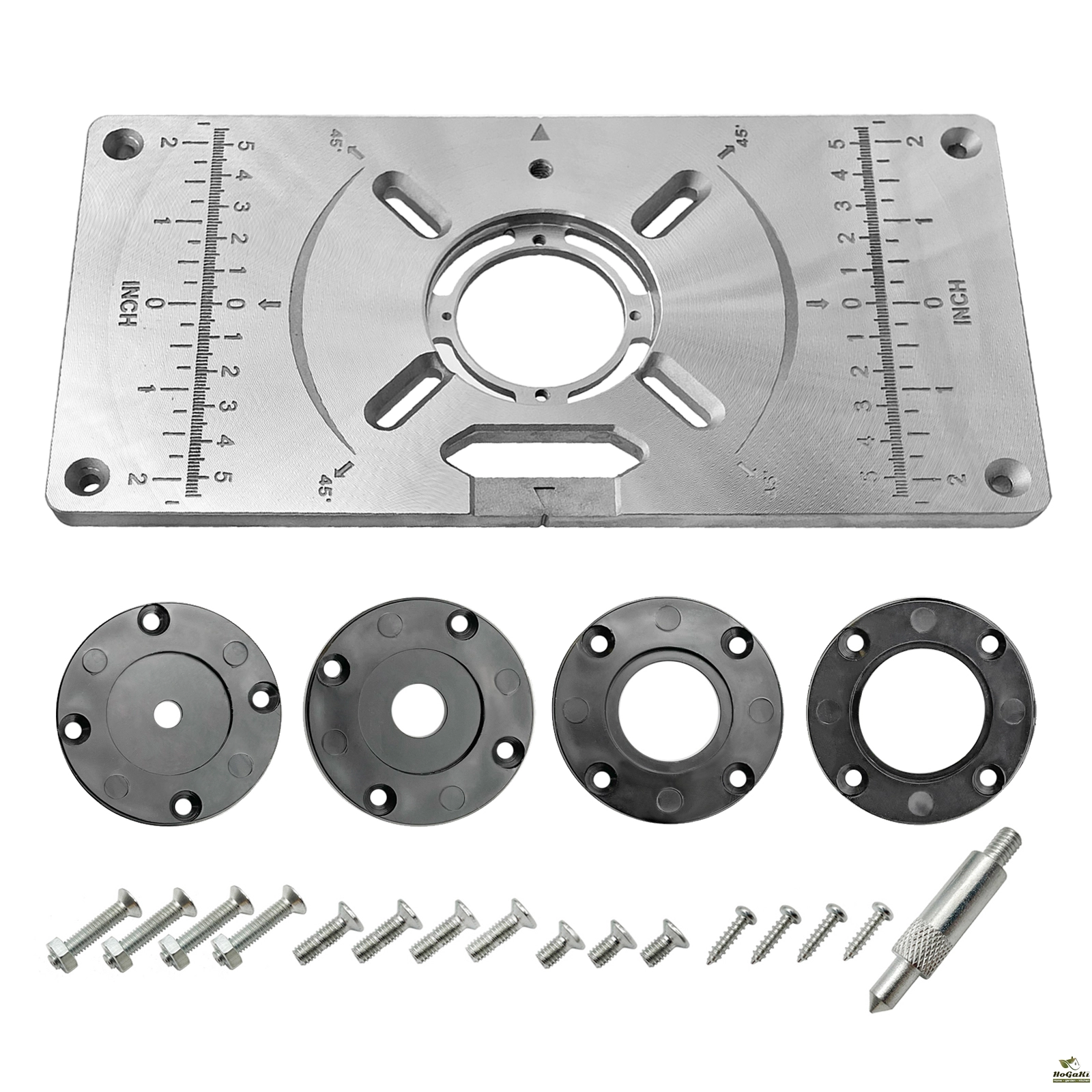 Convenient center-hole bushing used to aligned the router so it is centered in the bit hole.