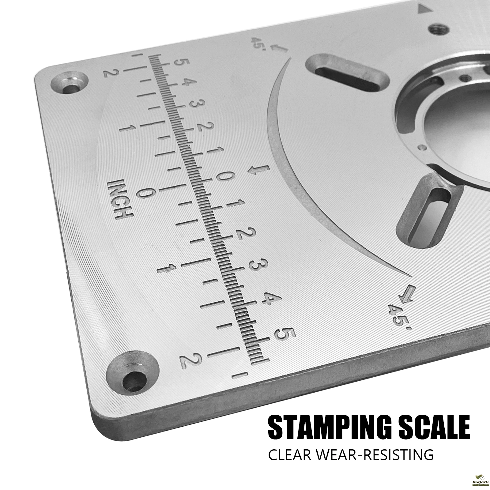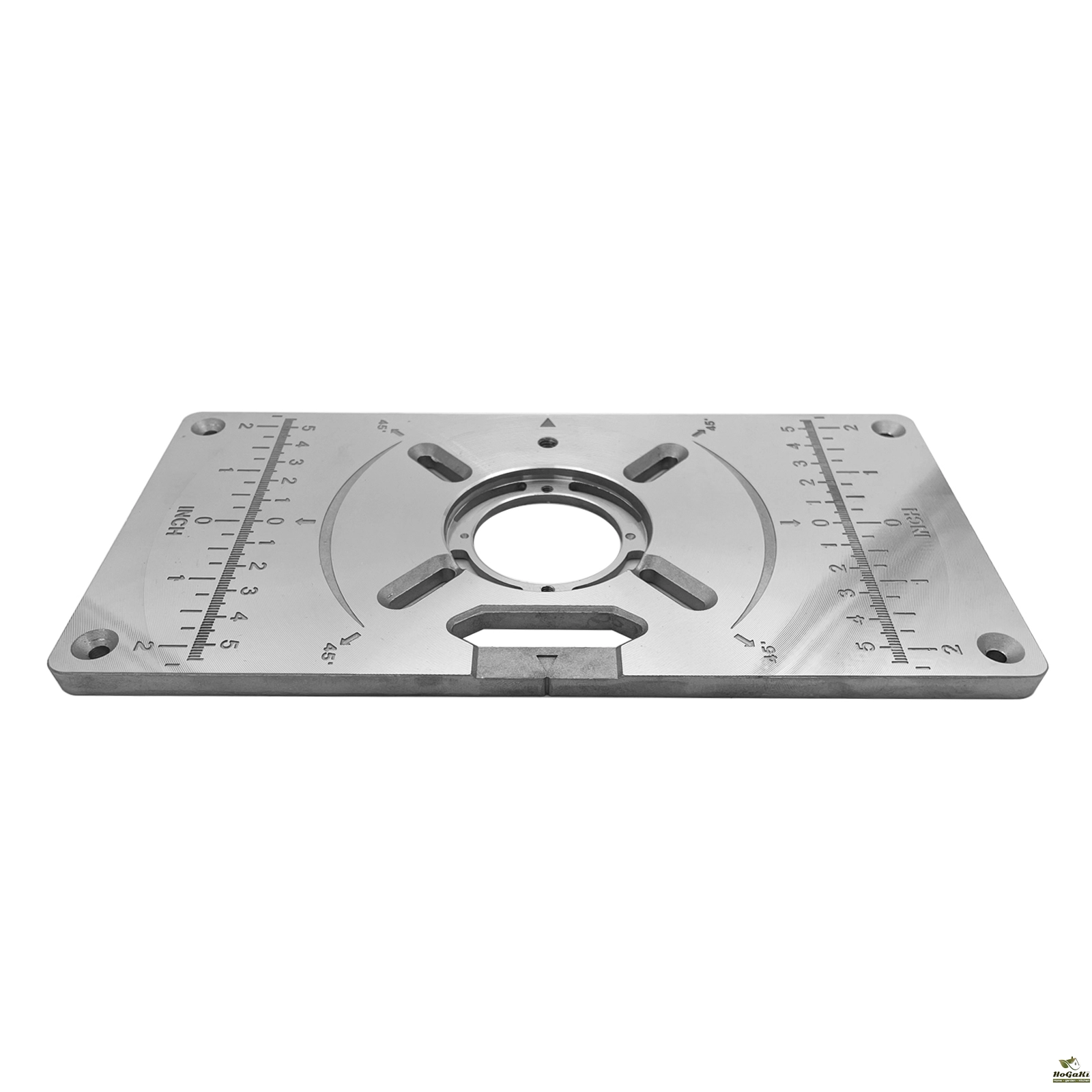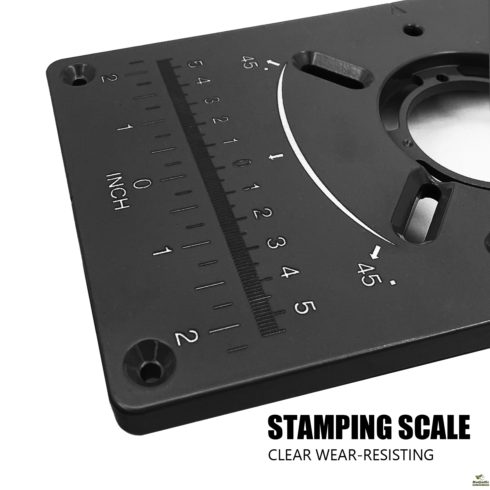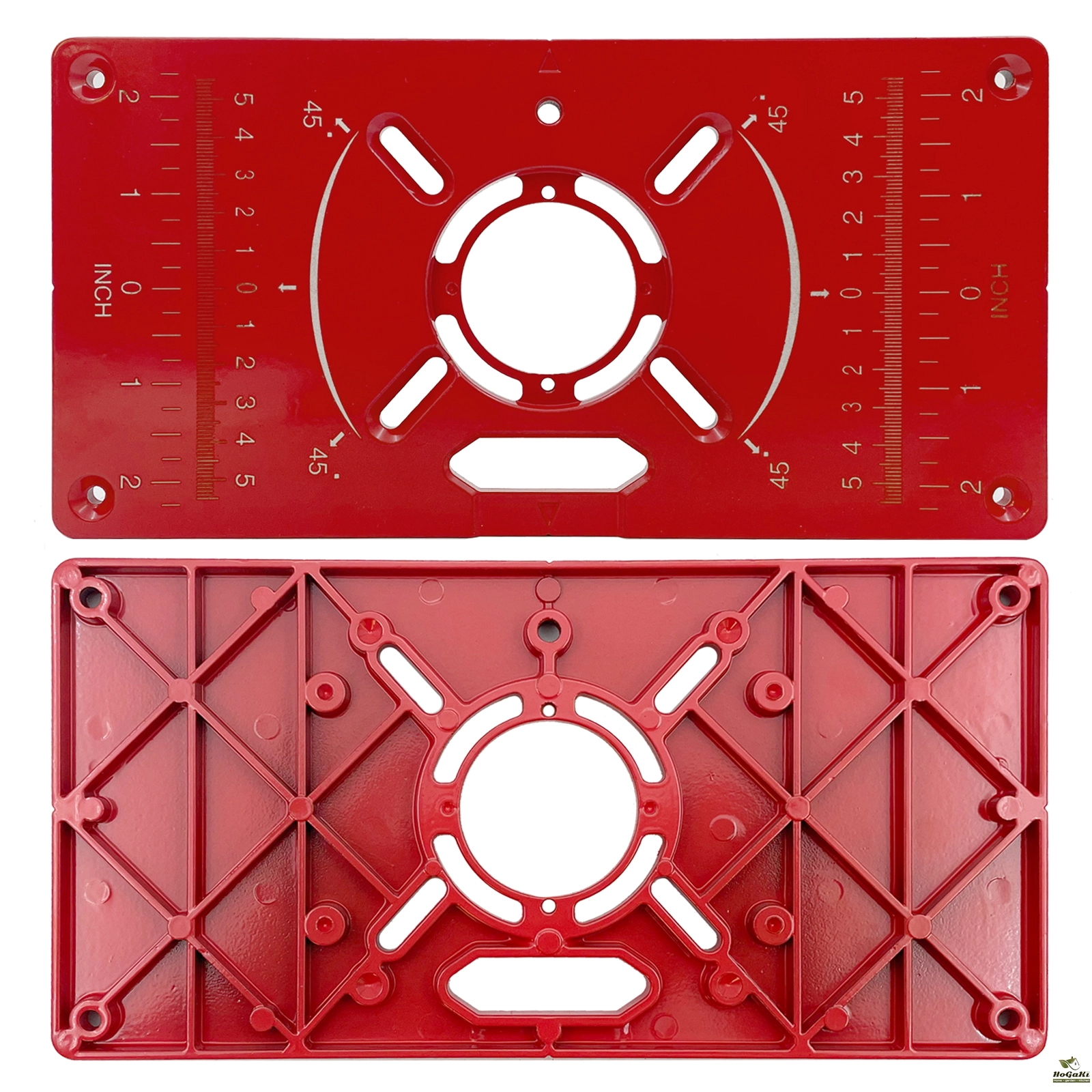 Convenient center-hole bushing used to aligned the router so it is centered in the bit hole.