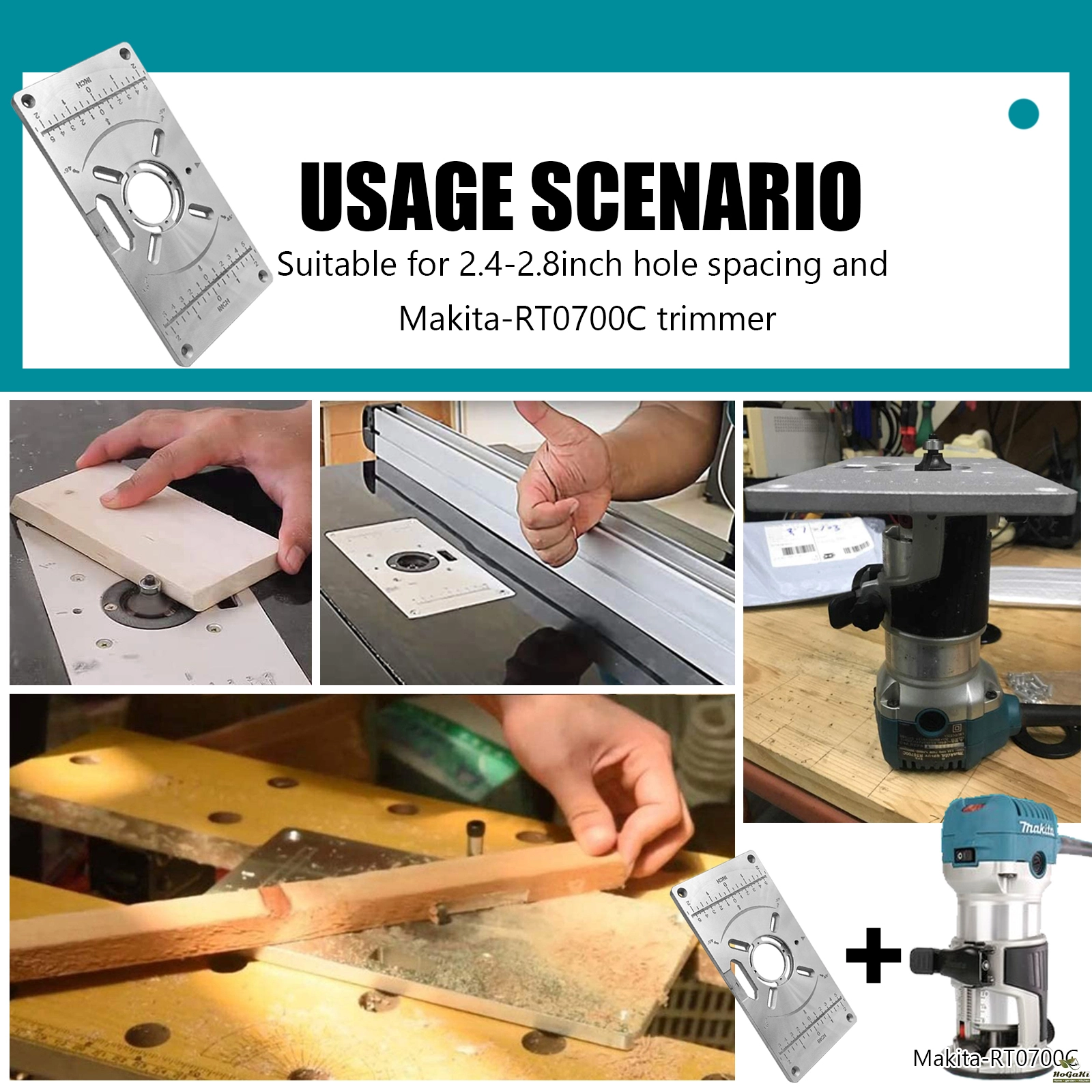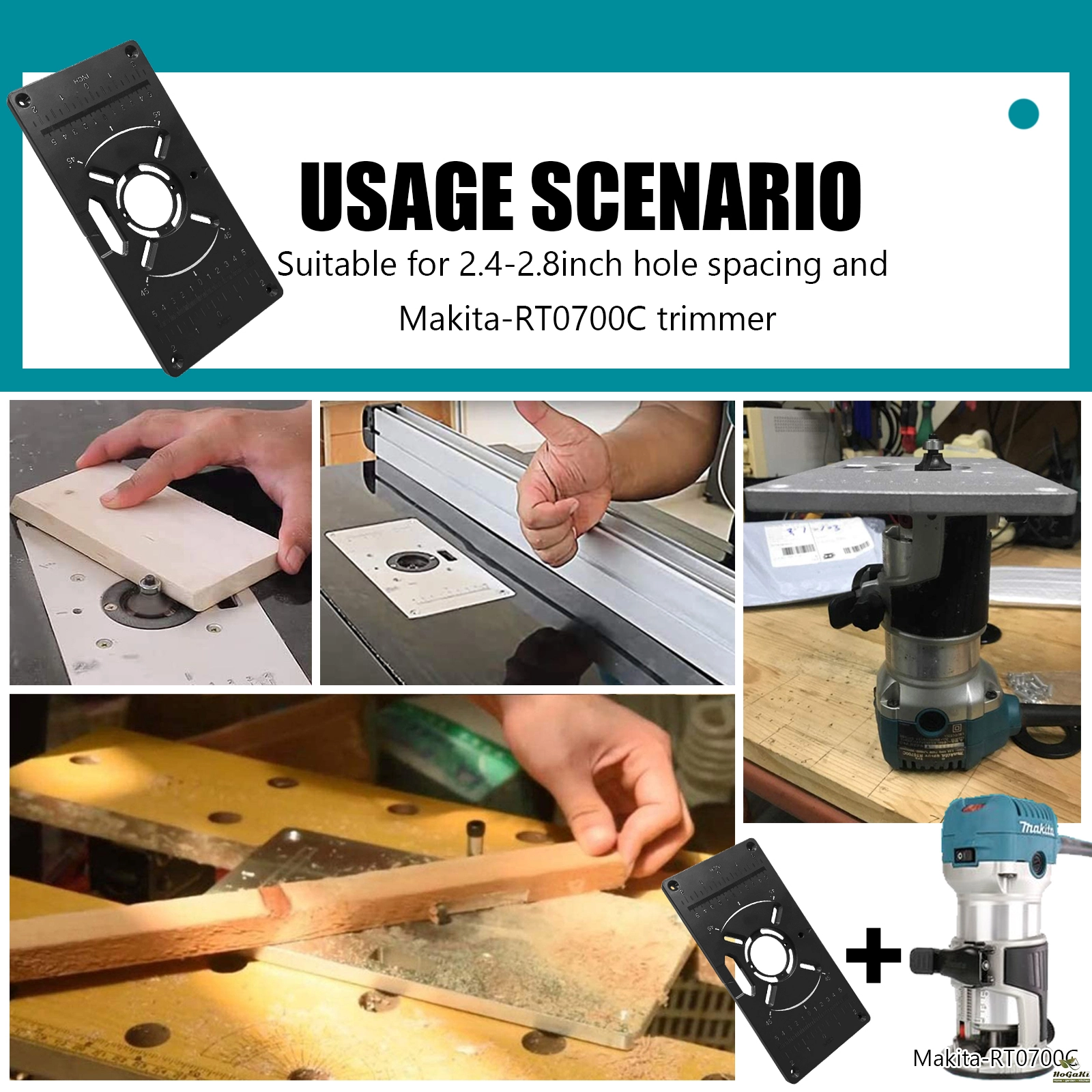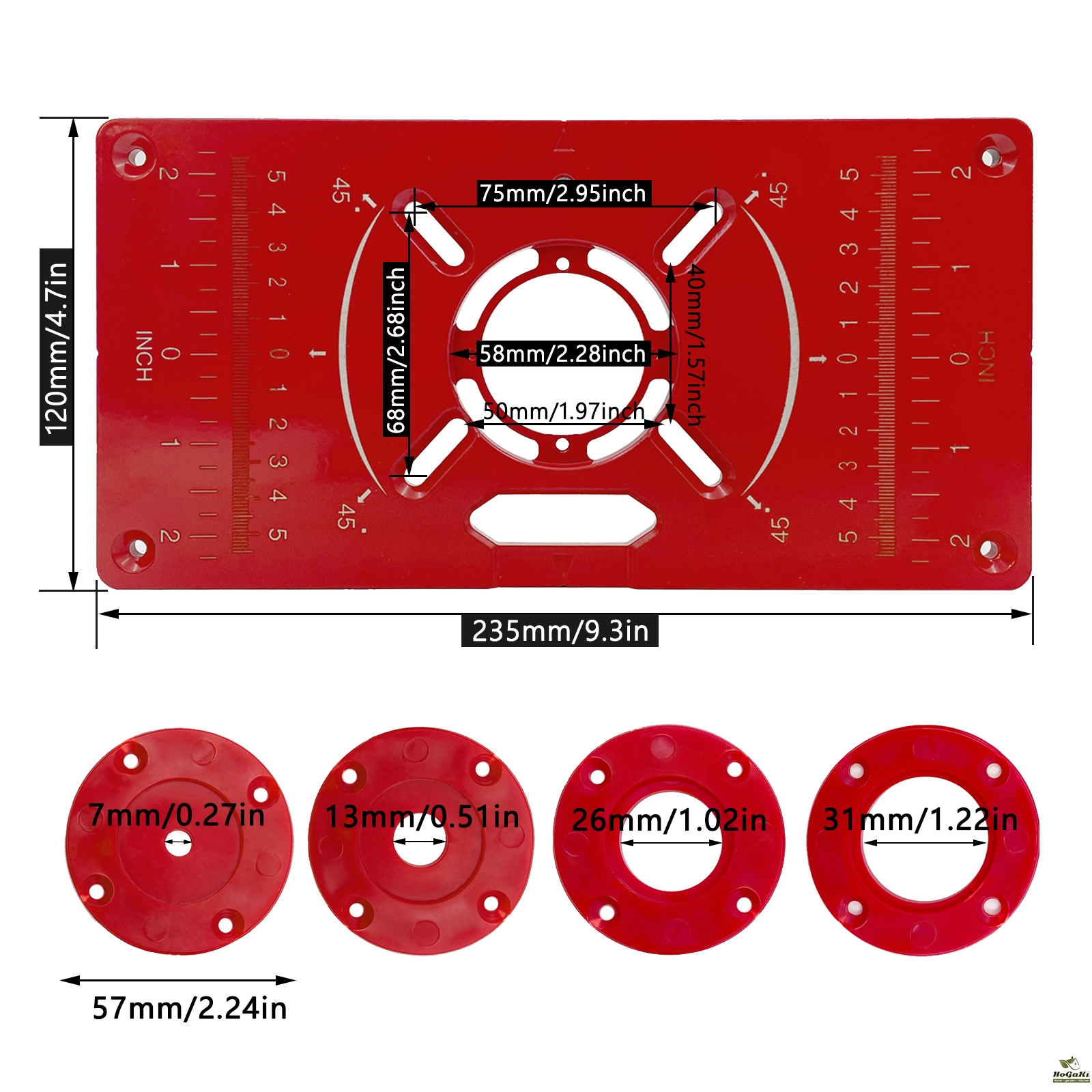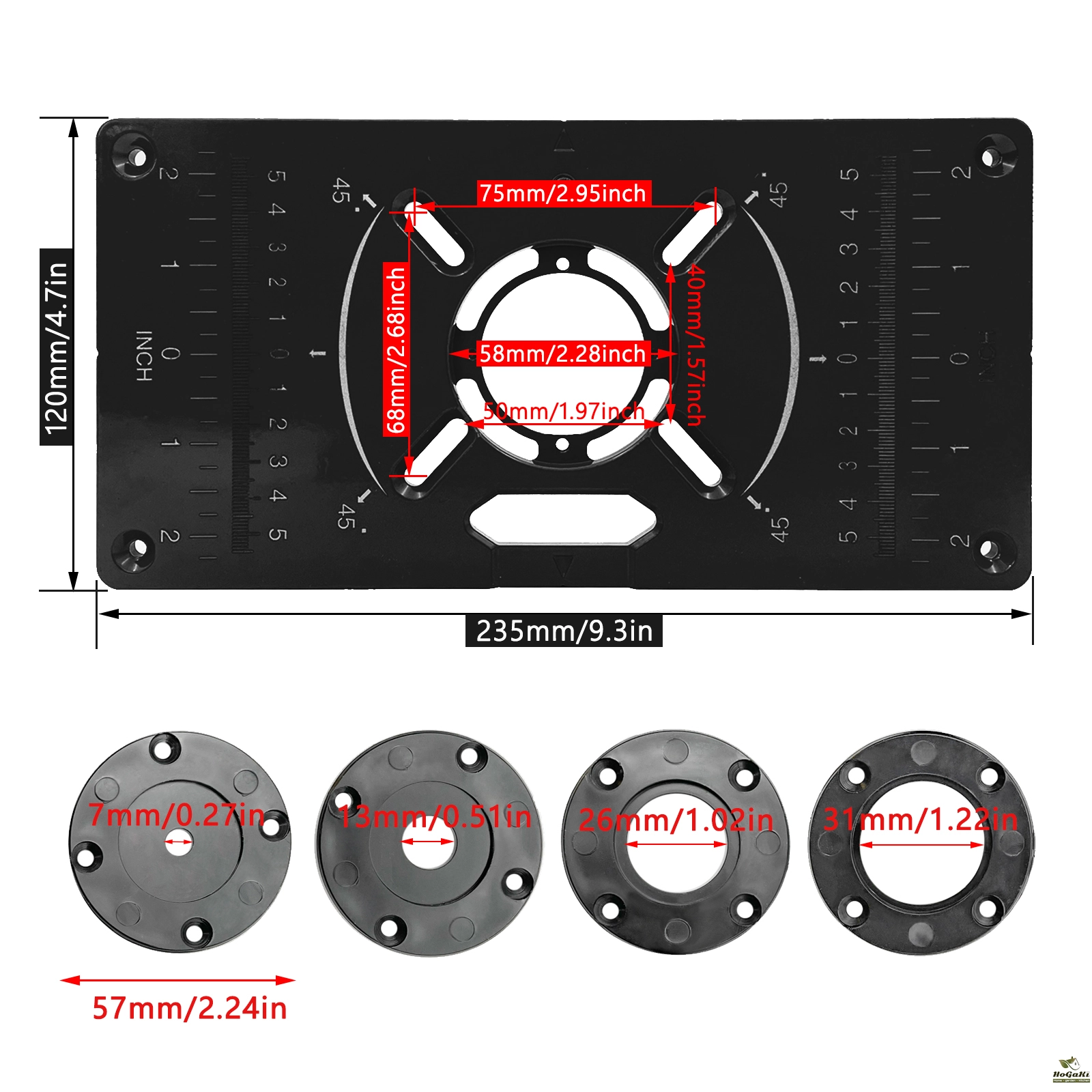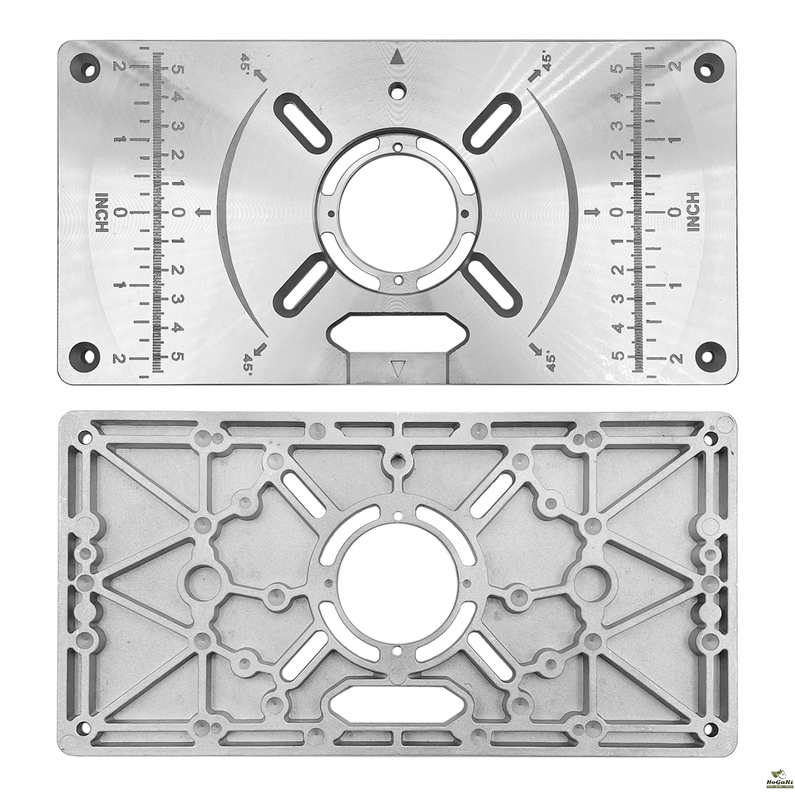 Convenient center-hole bushing used to aligned the router so it is centered in the bit hole.