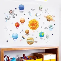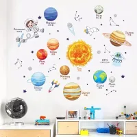 Cartoon Solar System Cosmic Planet Sun Earth Moon Wall Stickers for Kids Room Bedroom Reading Room Wall Decals School Nursery
