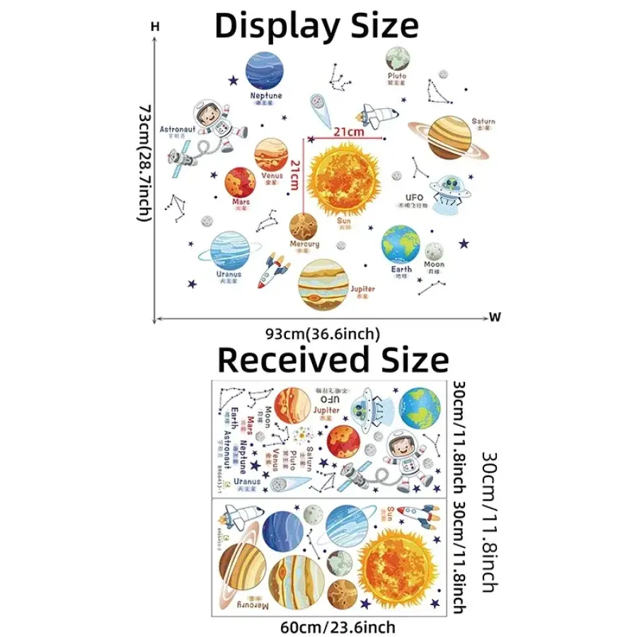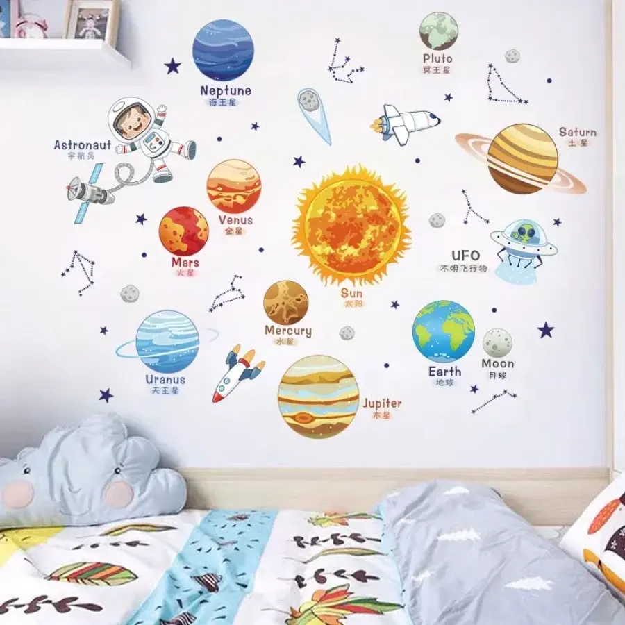 Cartoon Solar System Cosmic Planet Sun Earth Moon Wall Stickers