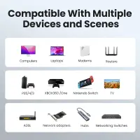 With the RJ45 Connector,Cat 8 ethernet cable can be perfectly compatible with computers, laptops, modems, routers, PS5, PS4, PS3, X-Box 360, X-Box One, Switch, network adapters and other networking devices.It can also be fully backward compatible with Cat7, Cat6e, Cat6, Cat5e, Cat5.