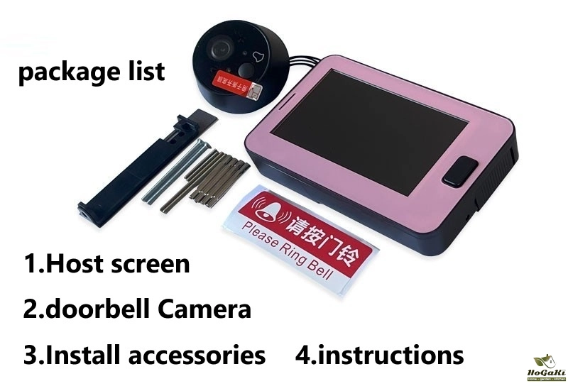 1.Host screen 2.doorbell Camera 3.Install accessories 4.instructions