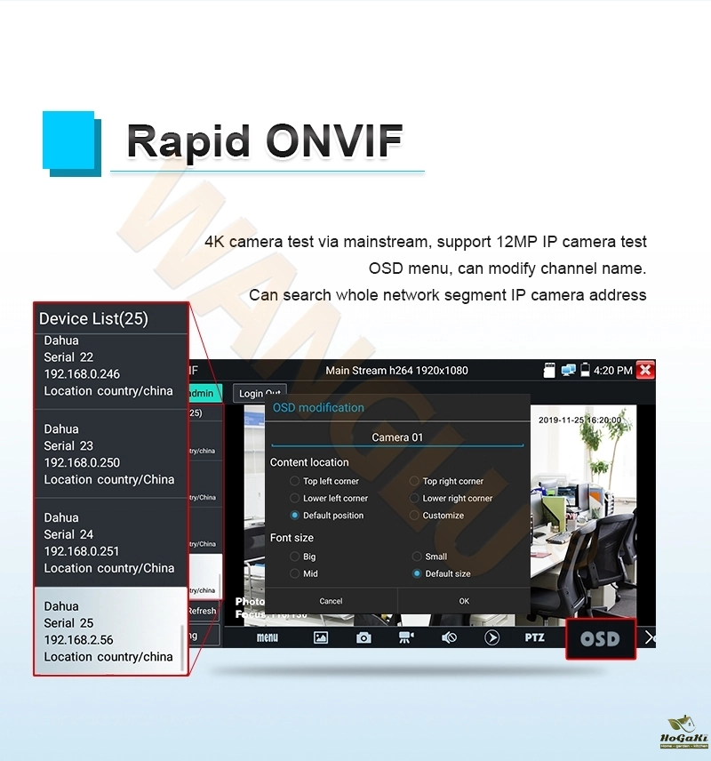 ● Rapid ONVIF, Auto log in and display image, create testing report