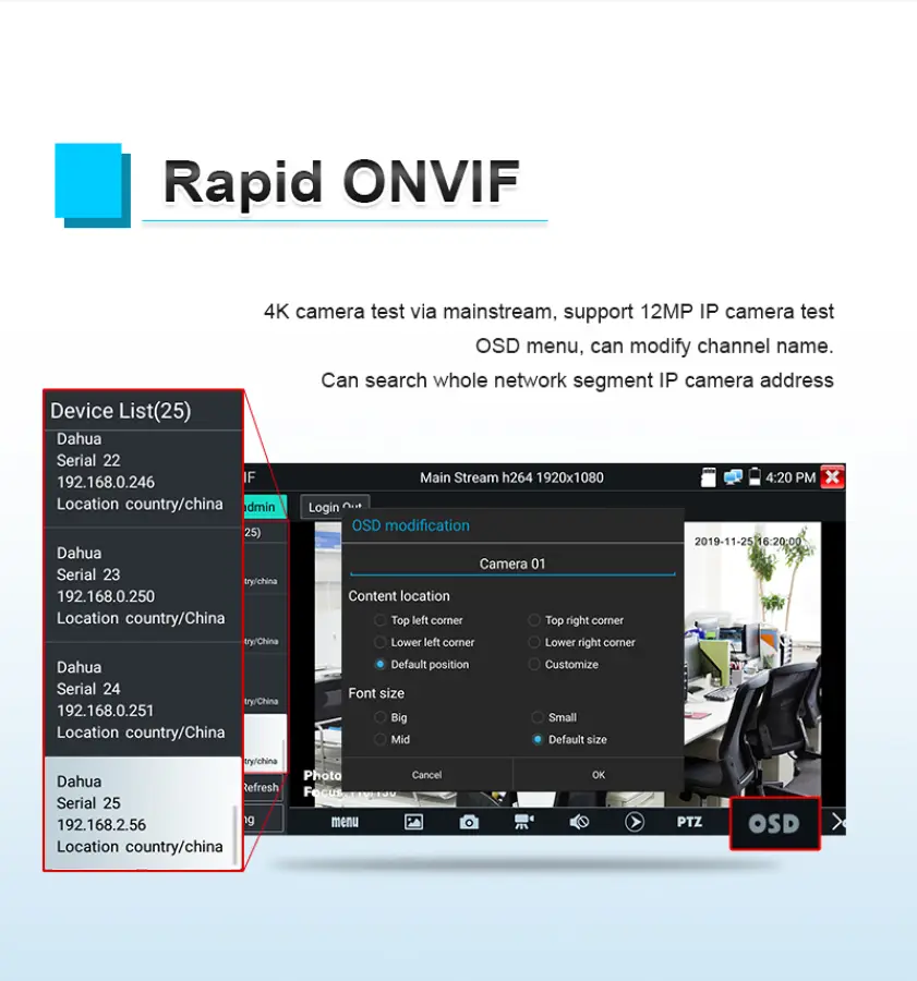 ● Rapid ONVIF, Create the test report and modify IP address, etc