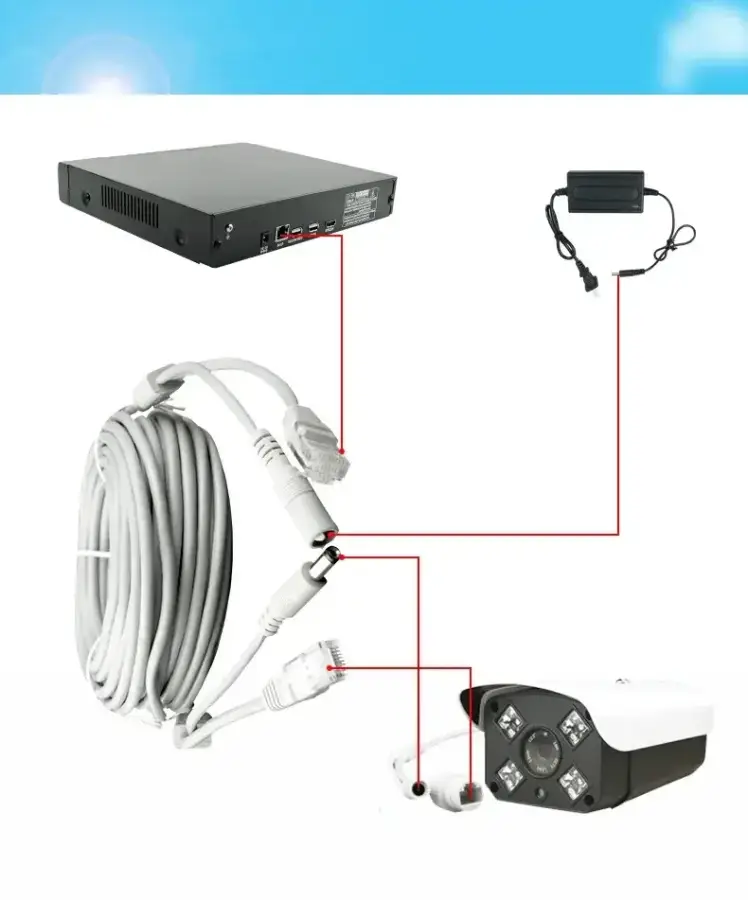 7: Ethernet Cables RJ45+DC Power are used for IP Cameras, and NVR System.