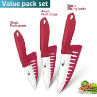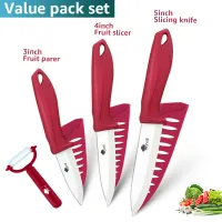 Ceramic knives should be used on wooden, plastic or bamboo cutting boards only. Using these knives on glass, marble, or tile can cause the blades to chip or break. These knives are ideal for cutting fruit, vegetables and boneless meats. Do not use these knives for carving, boning or prying. This can damage the knives.