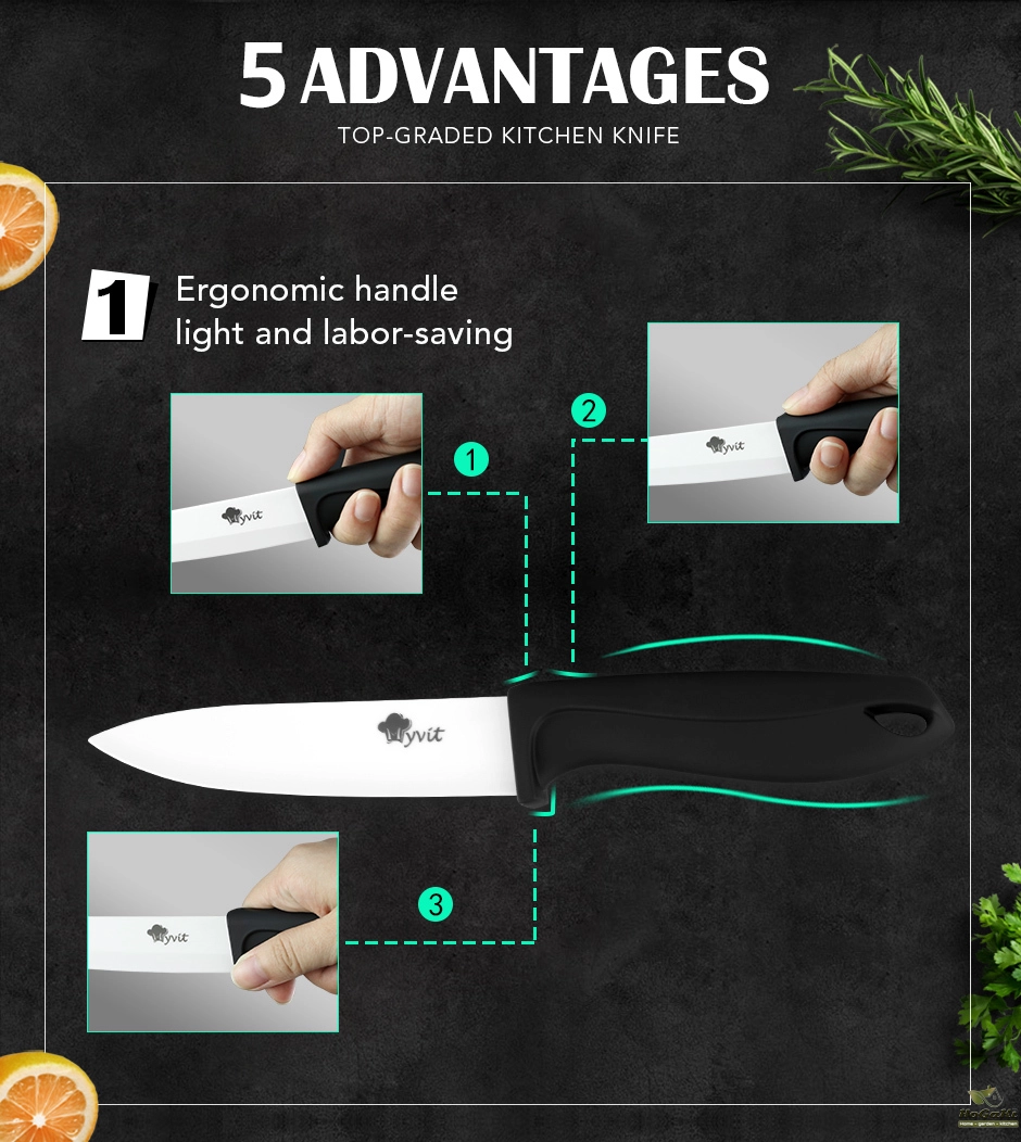 5. Final, advanced 36 degree convex edge grinding technology will help myvit ceramic knives super sharp.