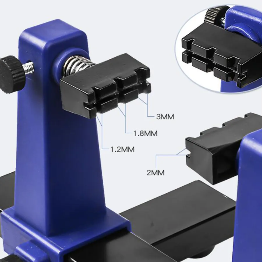 【Secure Grips】: The PCB Holder is equipped with adjustable clamps that ensure a secure grips on the circuit board, preventing any movement or slippage while you work. This stability allows for precise soldering or inspection. 5 clamping thickness size, 1.2mm, 1.8mm, 2mm, 3mm, 4mm.