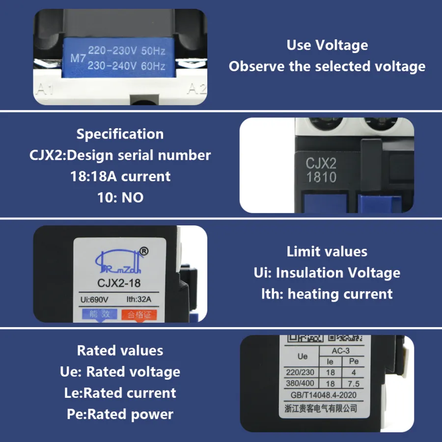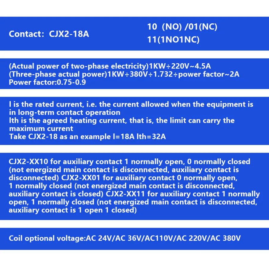 CJX2-1810 LC1 AC Contactor 18A 3 Phase 3-Pole NO Coil Voltage 380V 220V 110V 36V 24V 50/60Hz Din Rail Mounted 3P+1NO Normal Open
