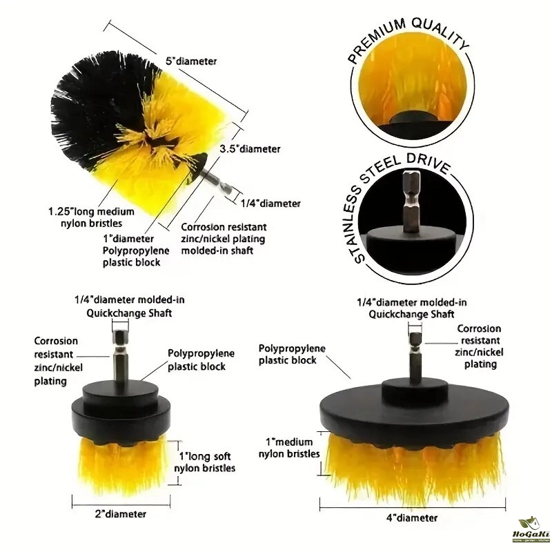 This comprehensive kit includes a variety of brush heads tailored for different cleaning needs. From heavy-duty scrubbing to delicate polishing, it’s the ultimate solution for turning your electric drill into a multi-functional cleaning powerhouse.