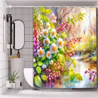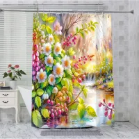 Floral pattern Bathing Curtain Bathroom Shower Curtain Waterproof With 12 Hooks Home Deco Free Ship