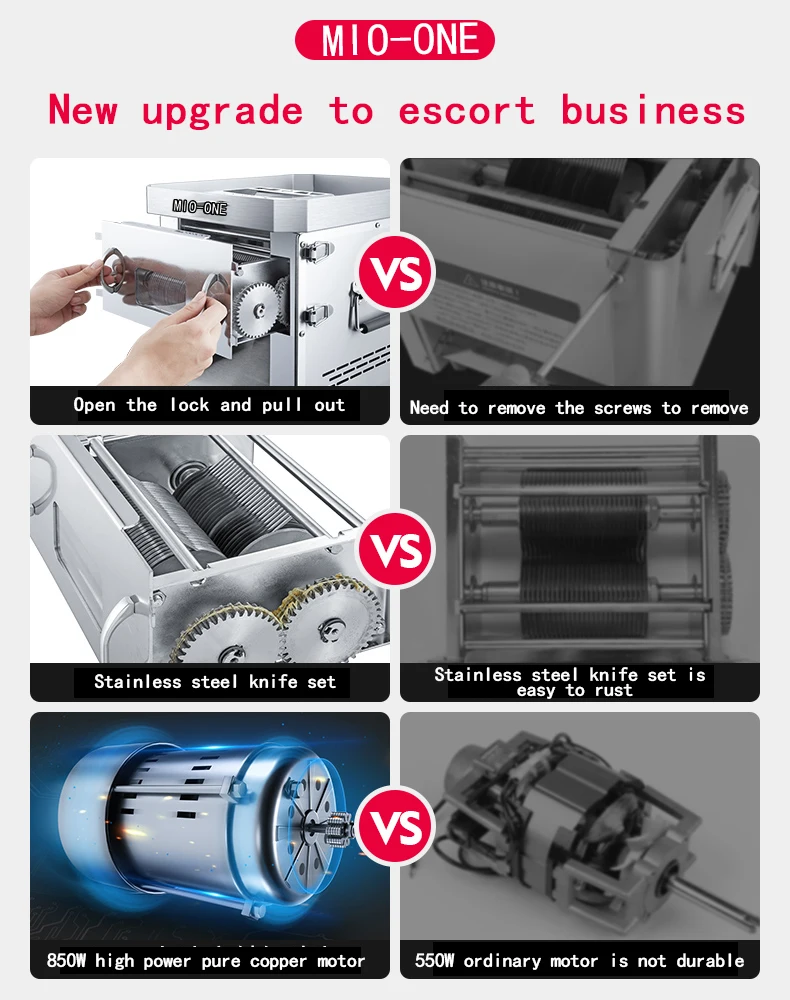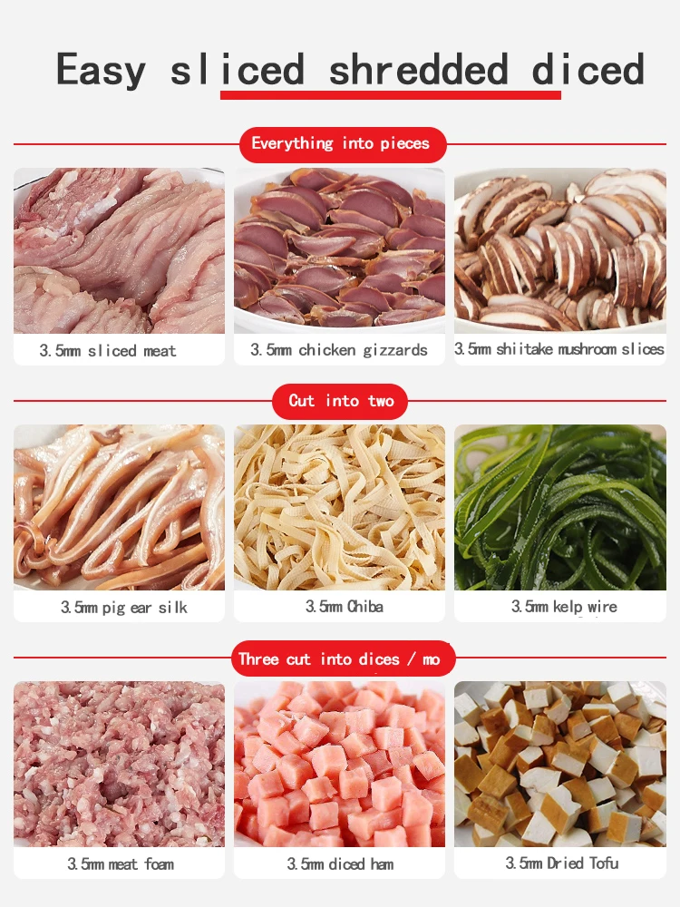 1. Multifunctional meat slicer, quick disassembly and assembly, changeable knife set, slicing, shredding and dicing