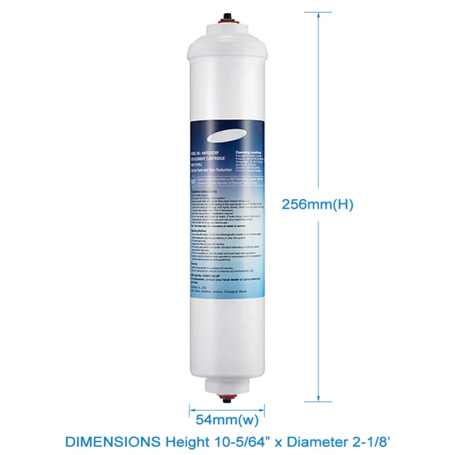 Refrigerator water filter Aqua-Pure Da29-10105J Aqua-Pure Da29-10105J water filter replacement: 3010541600, 3019974100, 3650JD8050A, 3890JC2990A, 497818, 5231JA2010B, 5231JA2012A, BL-9808, C00114417, DA29-10105J, DD-7098 , EF-9603, GXRTDR, GXRTQ, GXRTQR, HAFEX-EXP, Magic water filter, WSF-100, 5231JA2010A is an external built-in refrigerator water filter, it is a replacement ink cartridge for a side-by-side refrigerator, and the externally installed ink cartridge replaces Samsung (WSF-100, EF-9603, DA29-10105J), LG (BL-9808, BL-9303, 3650JD8050A), Siemens, Neff, Bosch, Daewoo (DD-7098) and other connector type water filters, with fast Connecting 6 mm-1 / 4" tube has passed NSF International's NSF/ANSI standard test and certification 42 Flow rate-1.9 lpm working temperature-minimum 4.4C / maximum 38C working pressure-minimum 172 kPa (25 psi) / maximum 862 kPa (125 psi) technology-activated carbon function-chemical reduction capacity-2464 liters service life-6 months