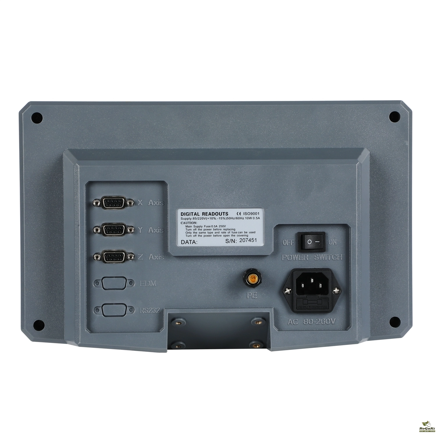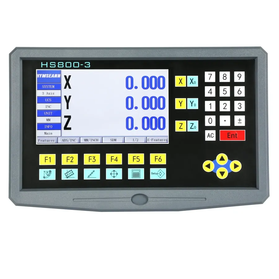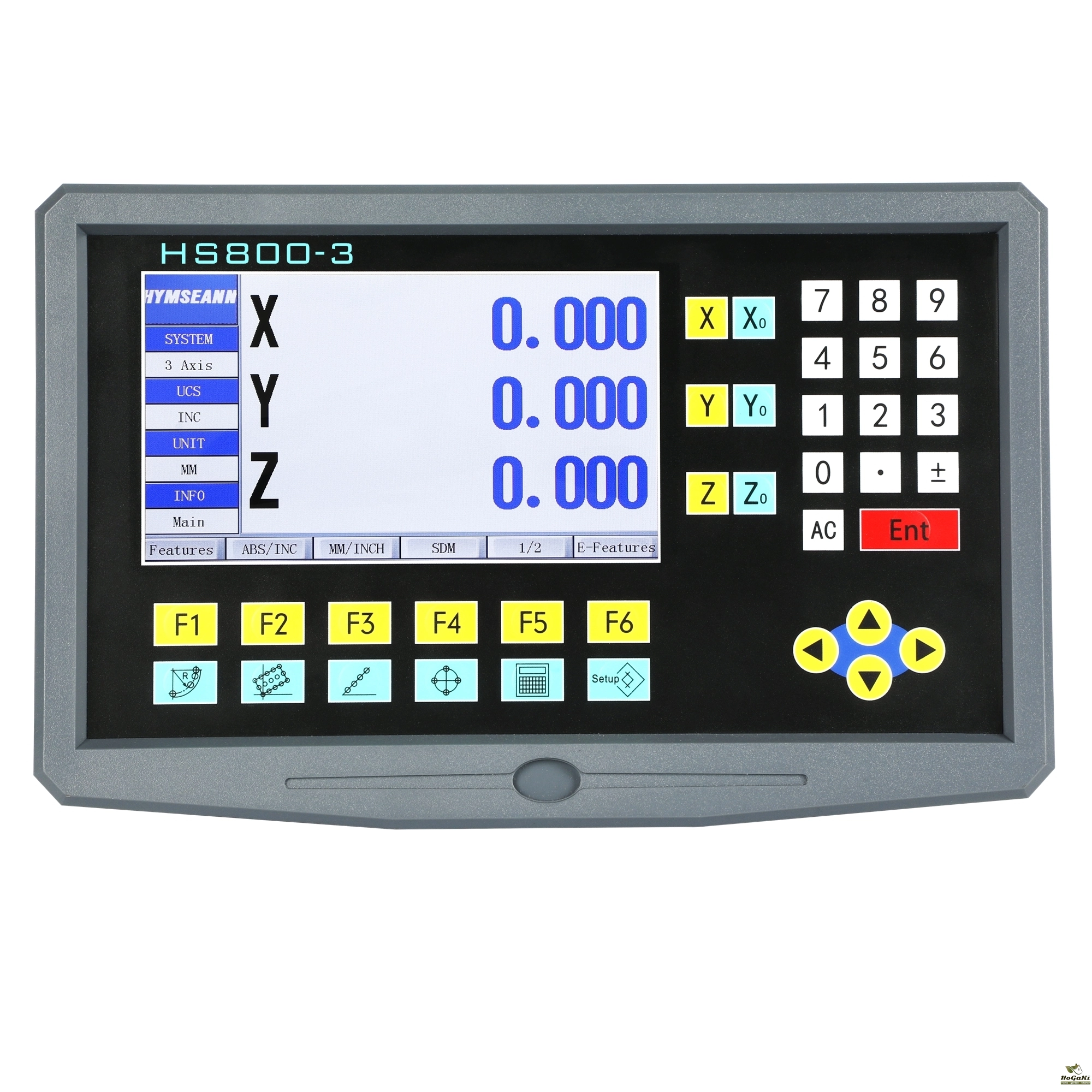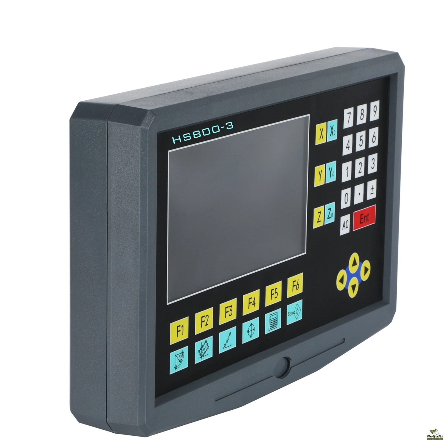 The DRO HS800-3 is a Multifunctional 3 axis digital readout. It can adapt the different needs of machining by modifying the system parameters. It has many graphics machining functions, such as: Arc Calculation function, circular equally dividing holes, drilling hole along an oblique line, Angular Surface Processing, Calculation function, Measurement for Taper Function, Digital Filter Function. These functions bring the easiness for the graphics function. The available input frequency of DRO is up to 5MHZ with A/B, it is also advanced in the world, and it's the first manufactory who employs 16 and 32 bits calculator in DRO system in China.