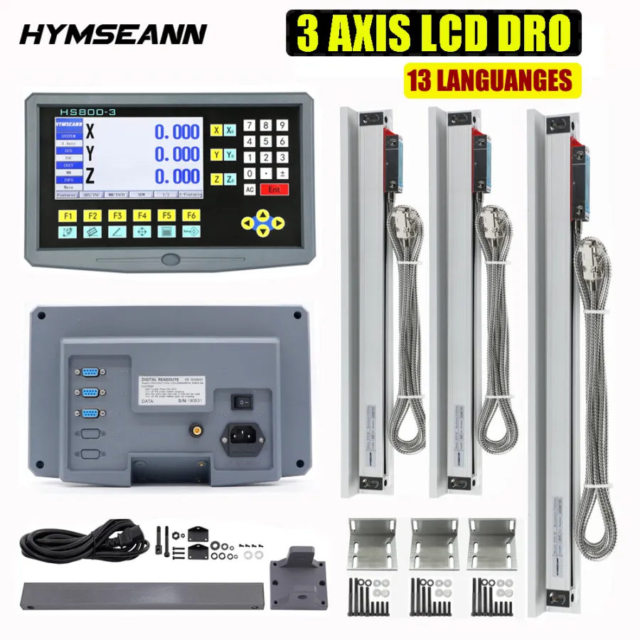 Complete Set 3 Axis LCD Digital Readout DRO with 3 Pieces 0-1000mm Glass Linear Scale Encoder Sensor For Milling Lathe