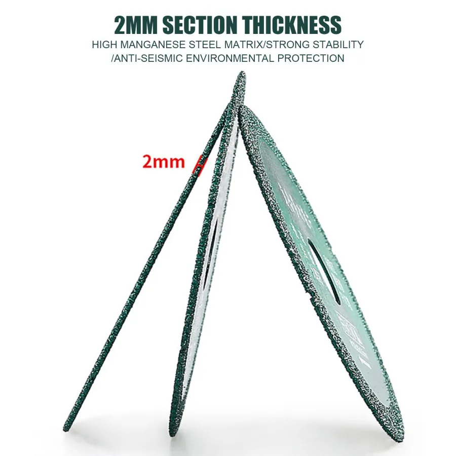 High-quality and Stability ---- Using diamond high manganese steel matrix, new brazing process, no deformation, no cracking, safer in use. There is no need to replace the cutting blade frequently, saving working time and improving production and processing efficiency. (NOTE:When using these cutting wheels, please wear all applicable safety equipment. )