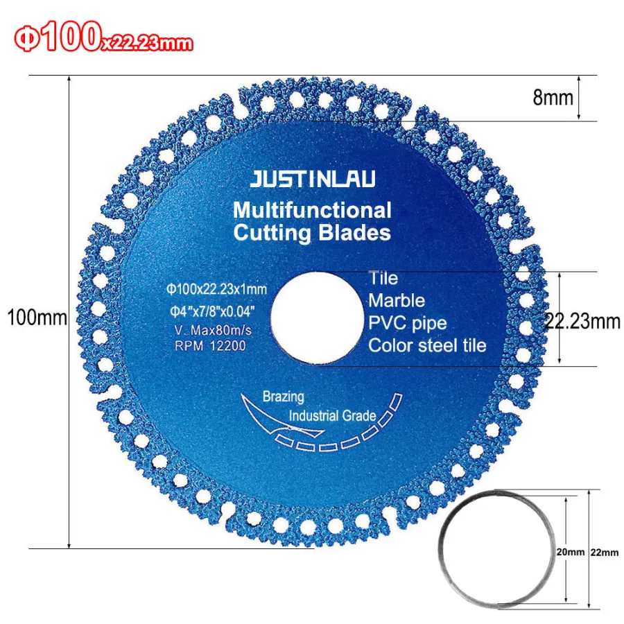 Designed for 100 angle grinder, easy to install and use, able to withstand the requirements of dry/wet cutting and long-term continuous cutting.