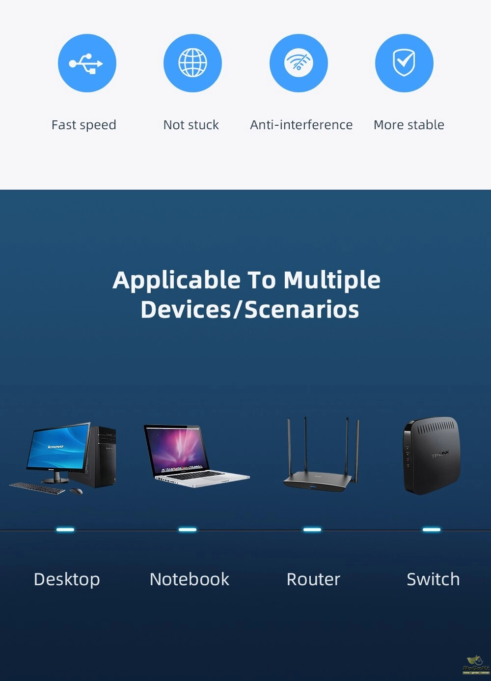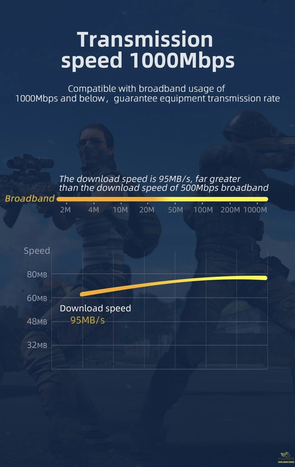 Theoretical transmission rate up to 1000Mbps, supporting 250MHz bandwidth, theoretical download speed up to 125MB/s.
