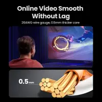 Consists of 8 cores, each strand is made of 26AWG wire gauge. 0.5mm thicker core, the thicker the core, the lower the impedance, the smoother the transmission, say goodbye to repeated loading.