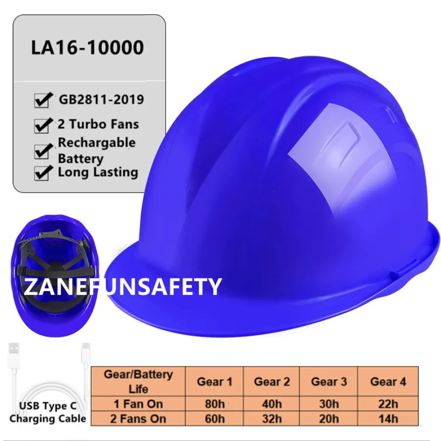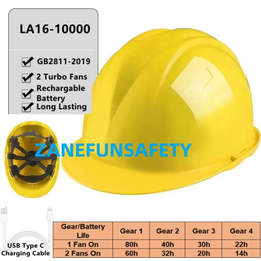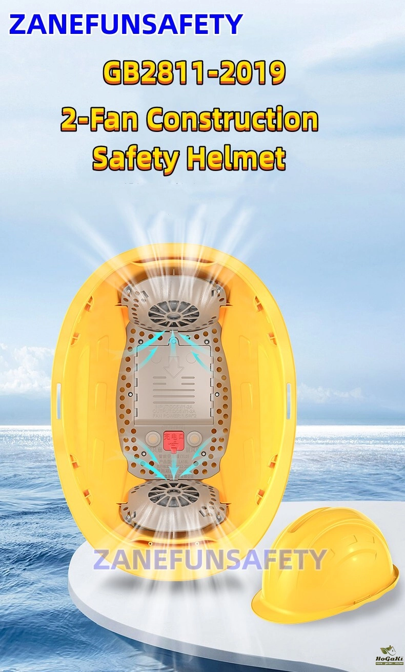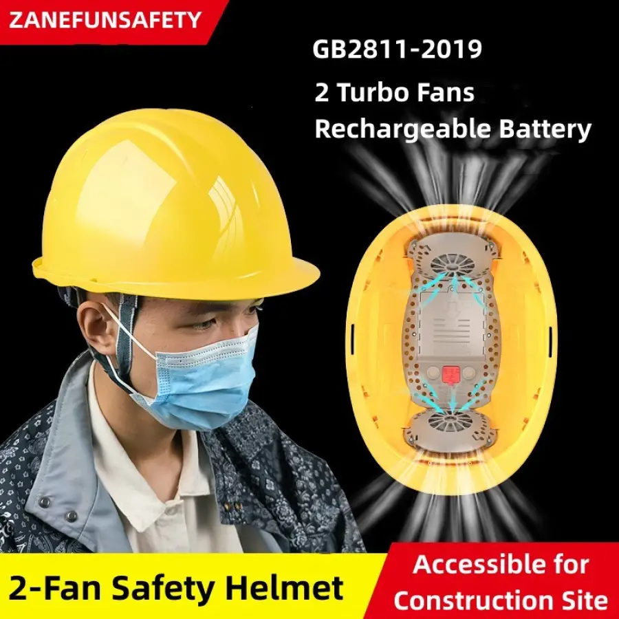 Construction Safety Helmet With 2 Turbo Fans and Rechargeable Lithium Battery