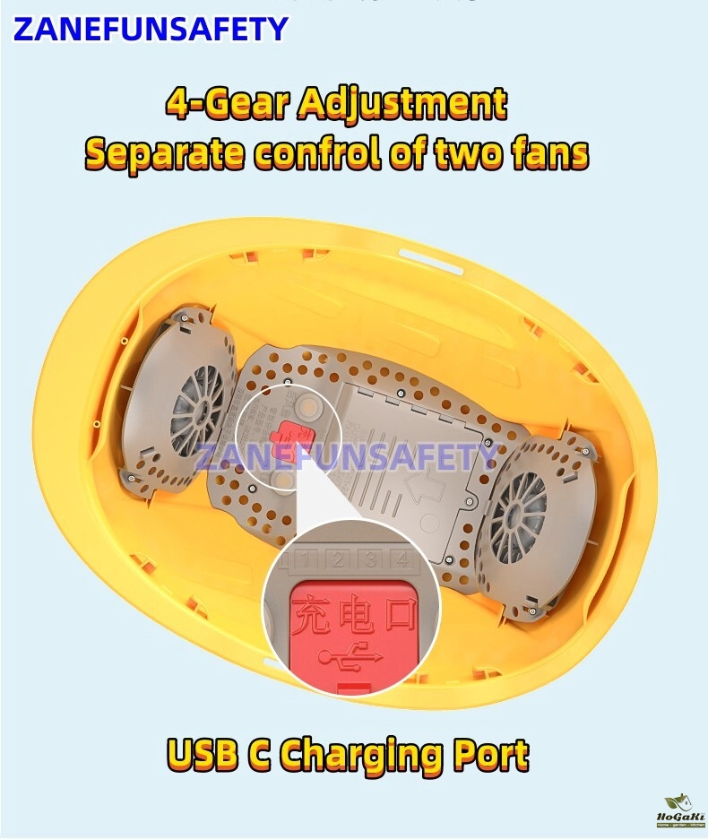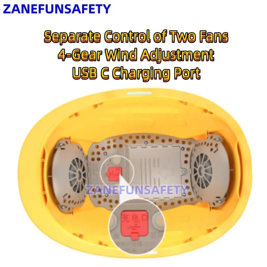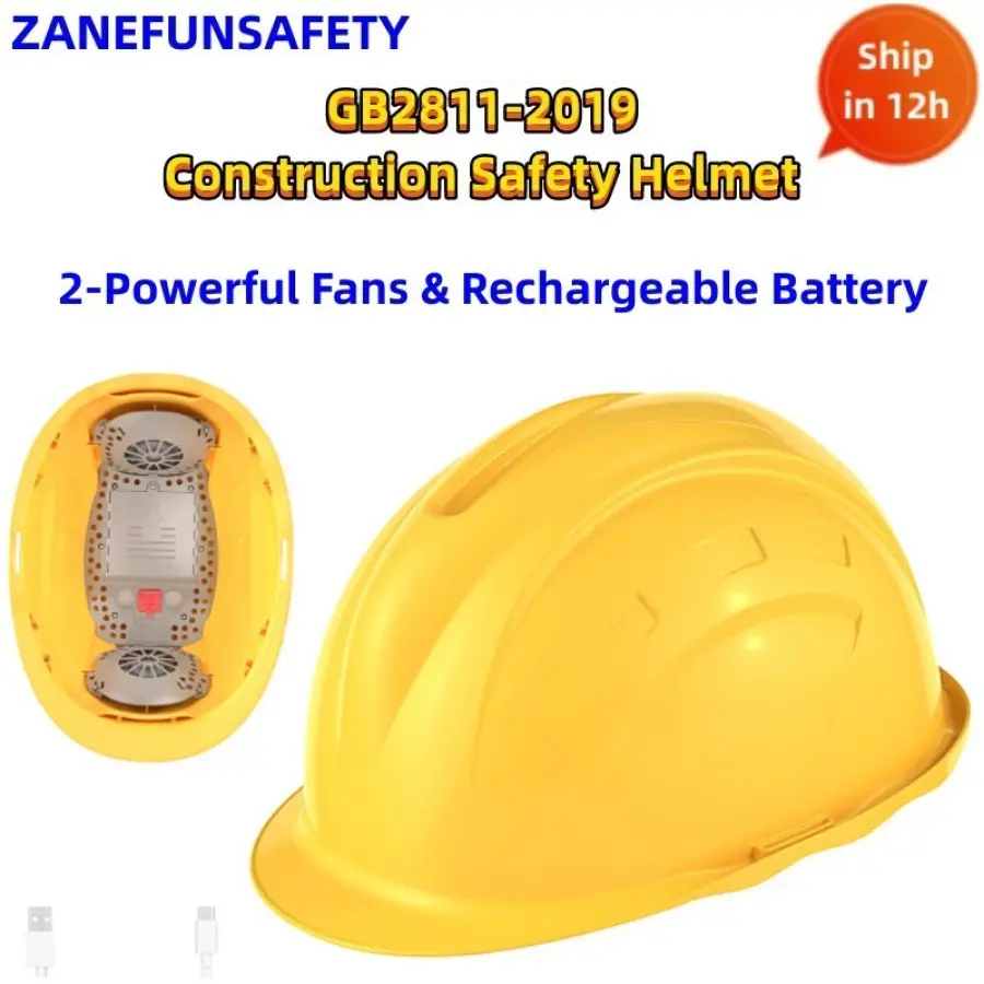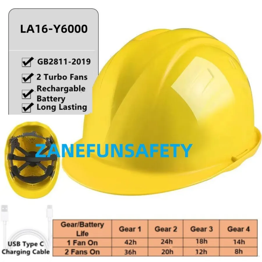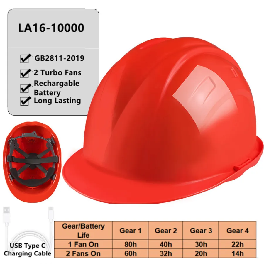 Construction Safety Helmet With 2 Turbo Fans and Rechargeable Lithium Battery