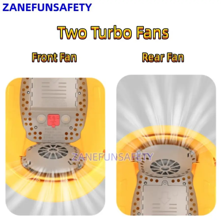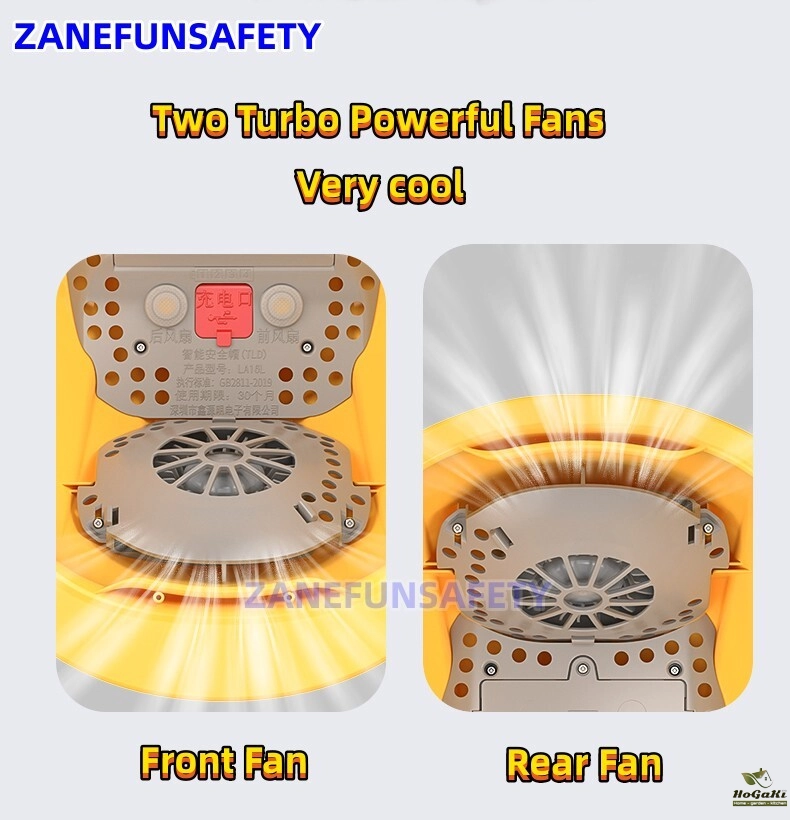 1. Two Turbo Fans with 4-Speed Wind: The front fan blows the forehead outlet, and the rear fan blows the whole back neck. We will feel very cool while working in hot summer.