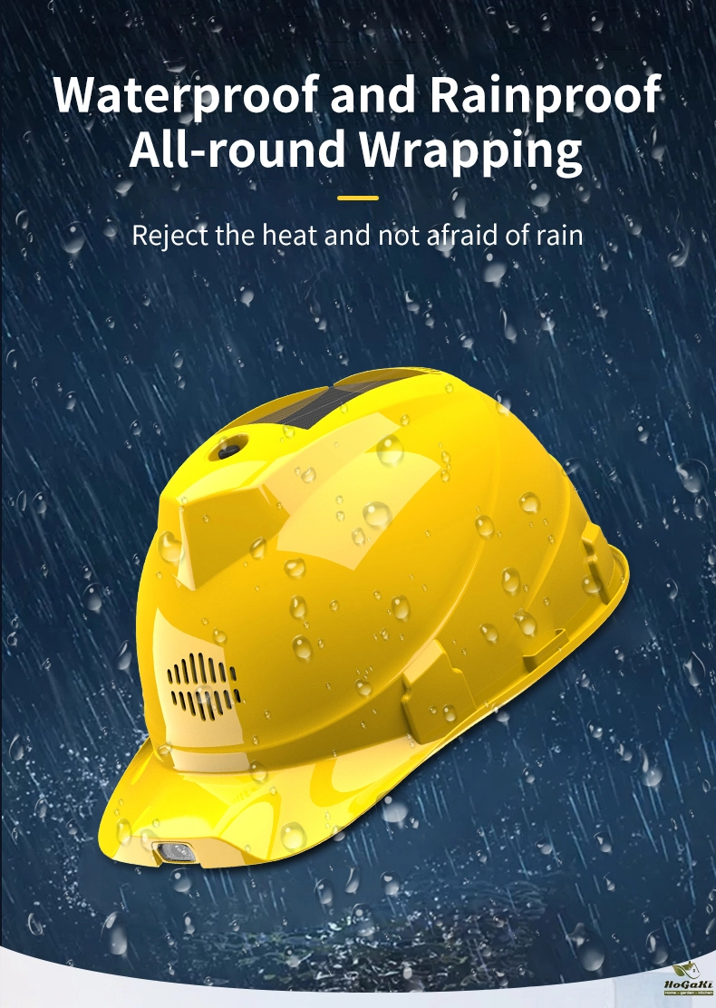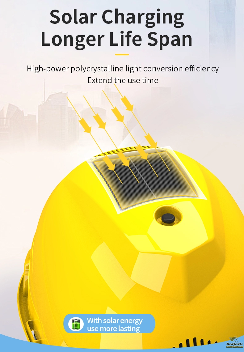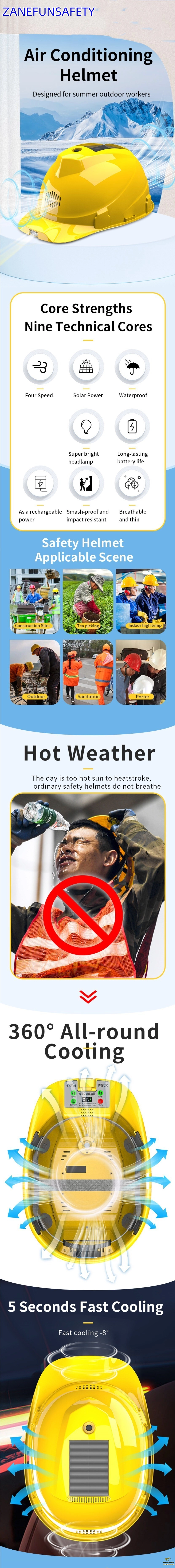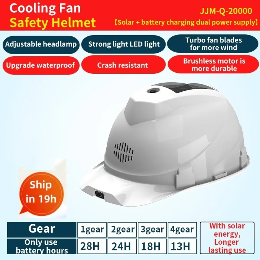 Certified Construction Safety Helmet with 2 Turbo Fans, Nano Spray Air Condition, 20000mAh Rechargeable Lithium Battery, 5W Adjustable LED Headlight, LCD Display, 1 Solar Panel, and IPX6 Waterproof Design