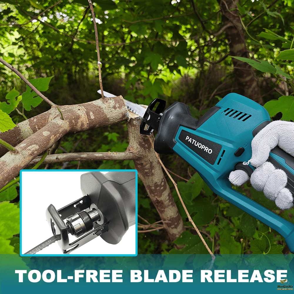 - Convenience features include a compact and ergonomic design of only 14-3/8” long making it ideal for working in tight spaces and overhead applications. To aid in reducing operator fatigue, the One-Handed Recipro Saw weighs only 1.4kg. (without battery, sold separately). It features a tool-less blade changing system to minimize downtime between blade changes. It has a built-in L.E.D. light that illuminates the workspace and a rubberized soft grip for increased comfort.