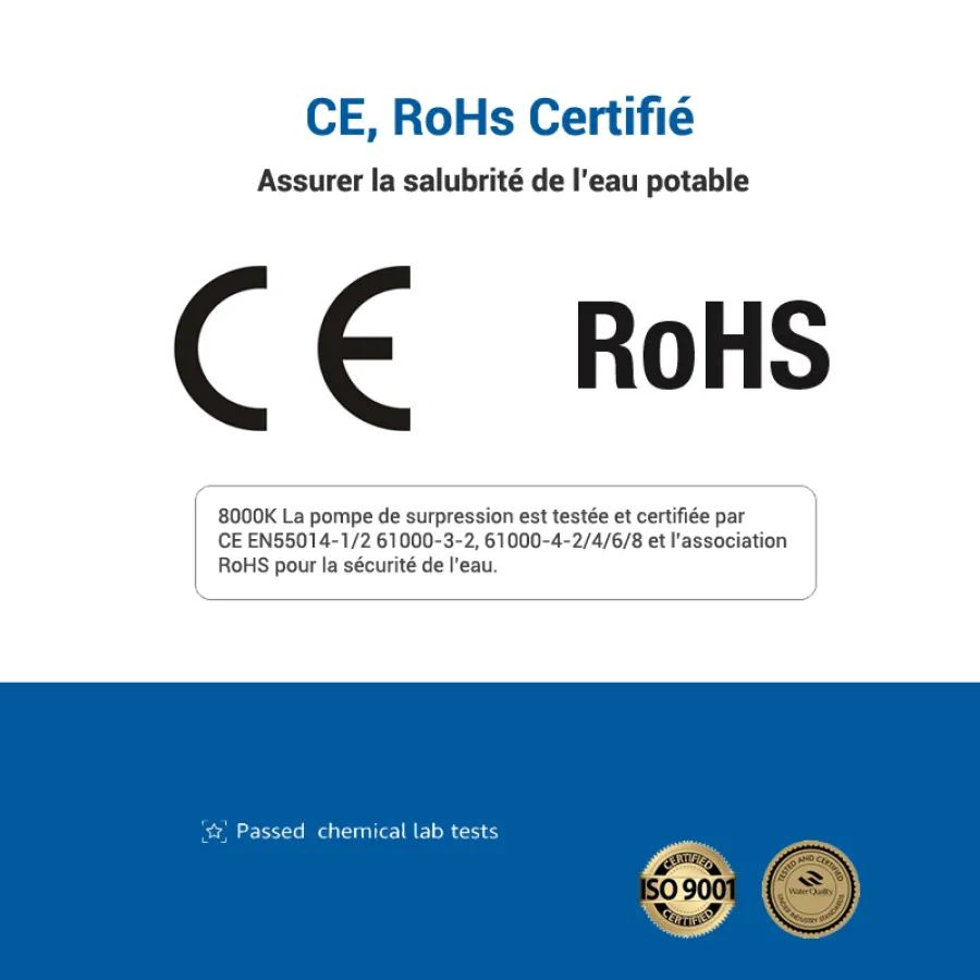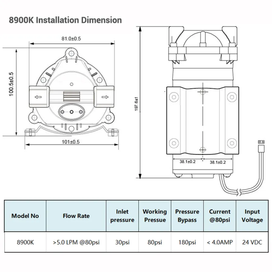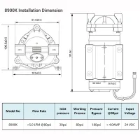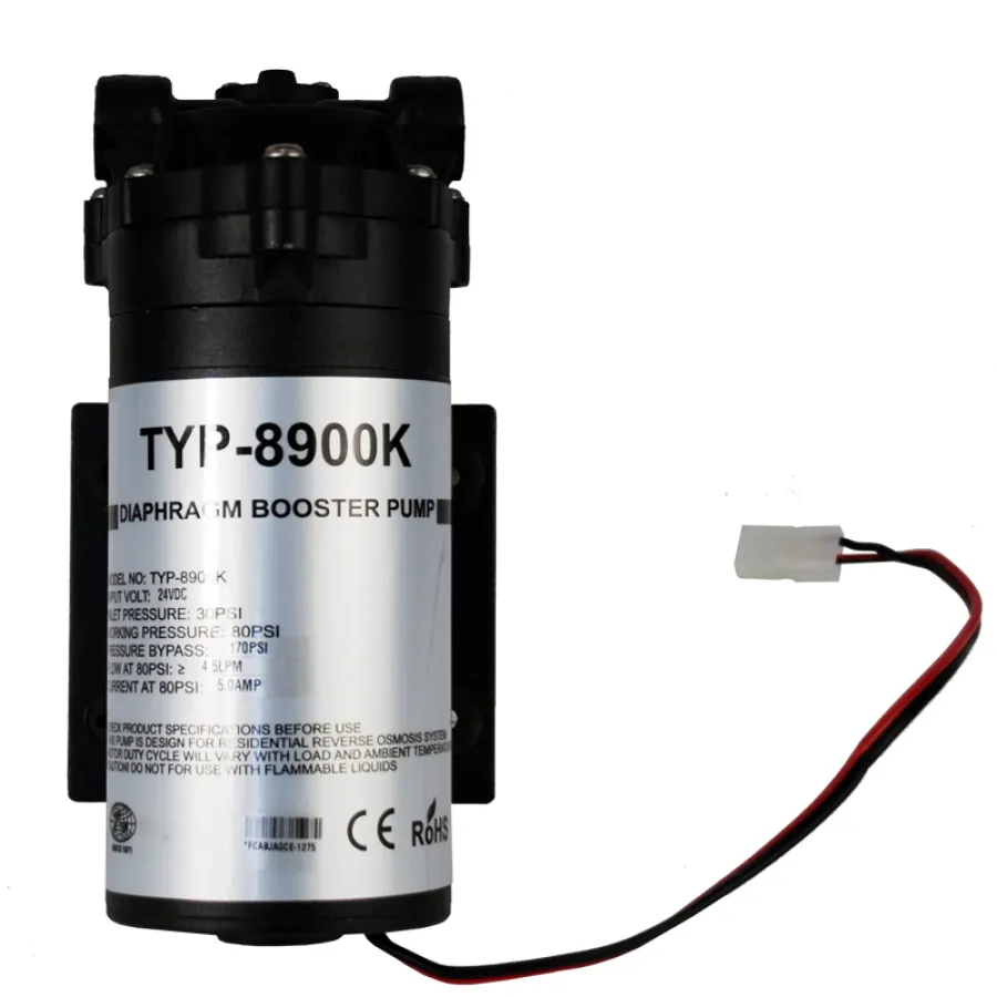 Water Filter booster pump 8900K is designed to operate with 800 Gpd reverse osmosis drinking water system. It provides reliable inlet pressure for efficient membrane utilization.