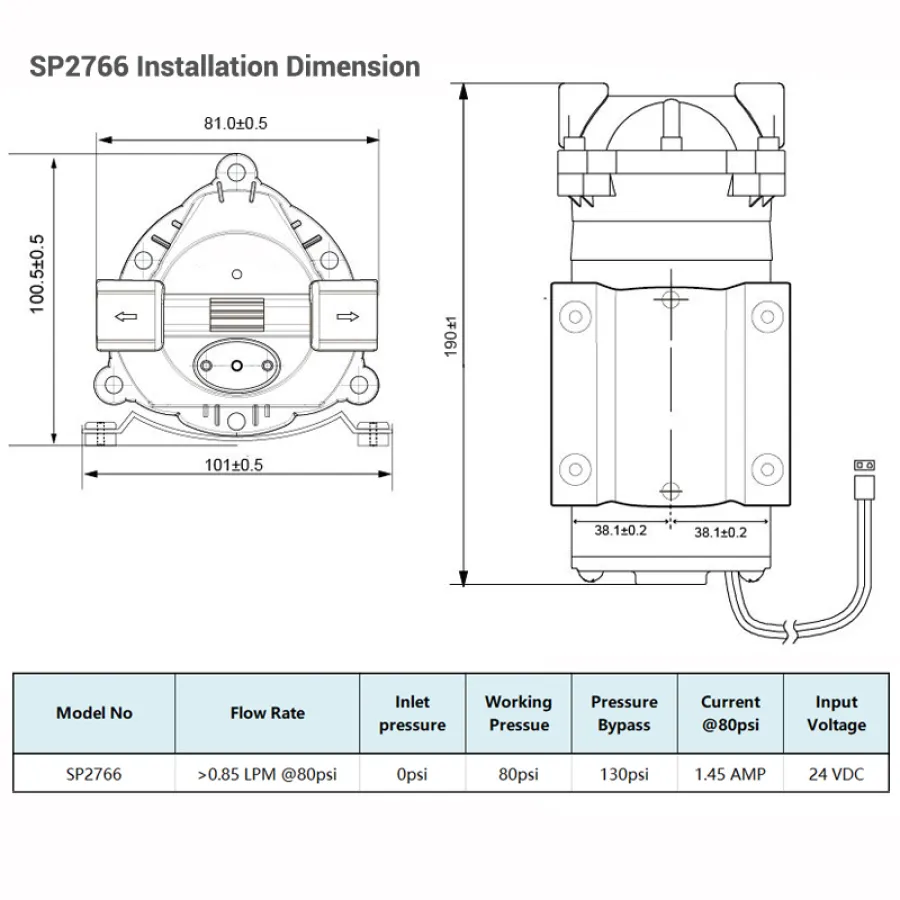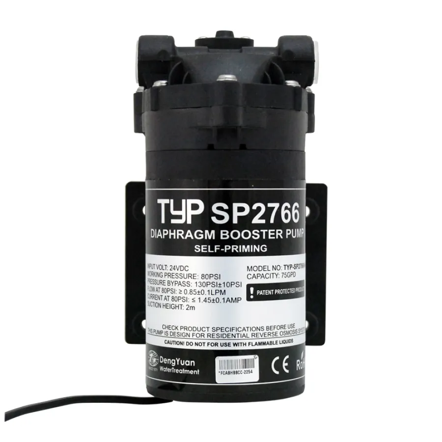 SP2766 pumps are available in flow rate 75 gpd and can be used in residential RO systems, coffee machines, vending machinese etc without feed water pressure needed.