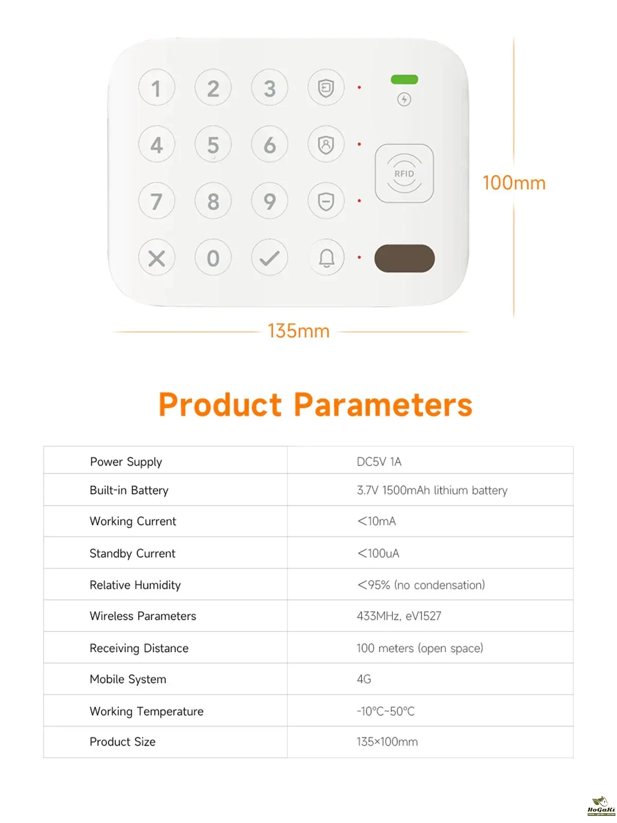 Staniot Wireless Alarm Security Keypad Built-in 1500mAh Battery Anti-dismantling Alarm RFID Tag for Home Security Alarm System
