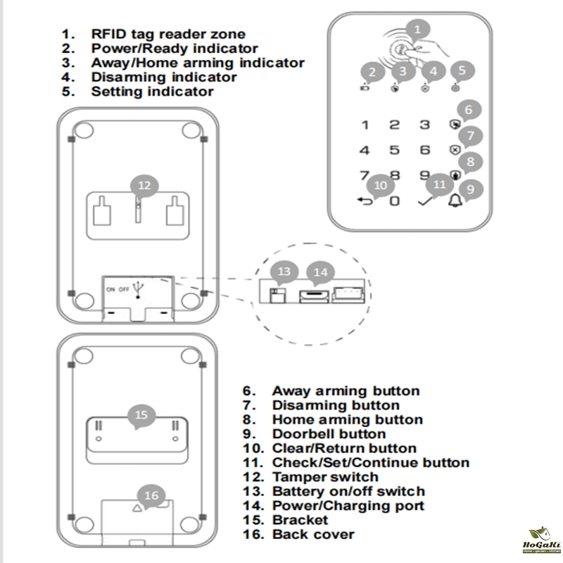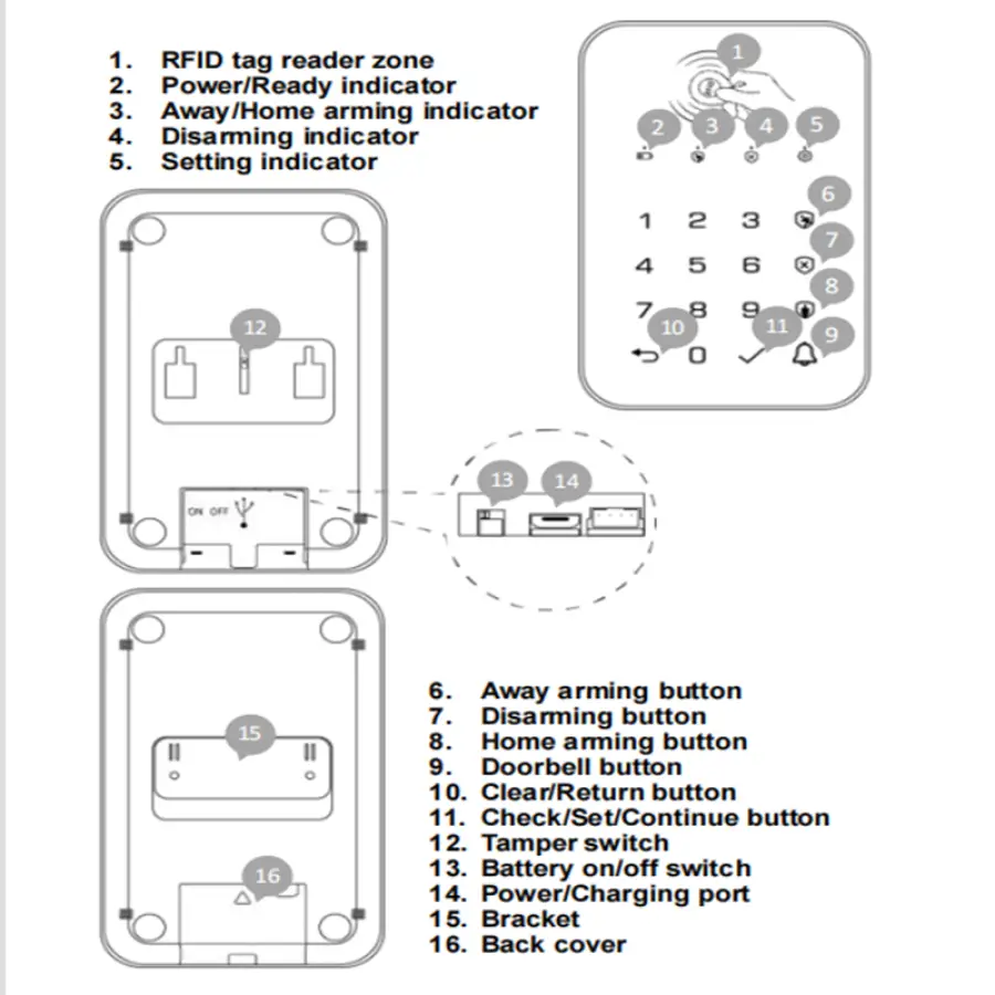 Staniot LoRa Version Wireless Touch Keypad 500m Transmission Distance Works with Secpanel 7 Pro Alarm Panel Support RFID Tags