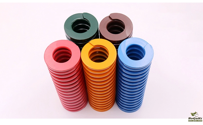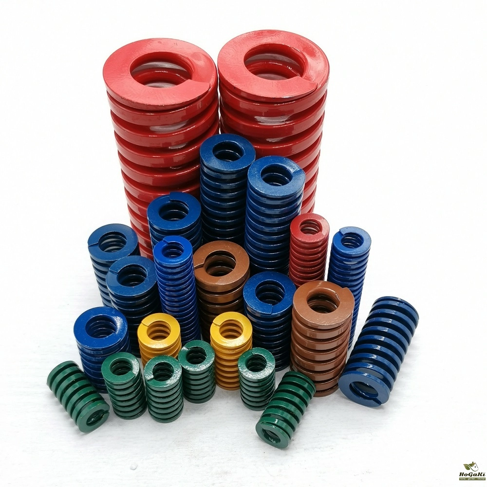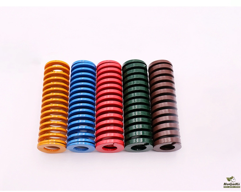【Applicable fields】: Mold springs are widely used in stamping dies, metal die-casting dies, plastic molds, and other elastic motion precision machinery and equipment. Description: Yellow and blue are mainly used for plastic mold assembly. Red, green and brown are mainly used for hardware assembly.